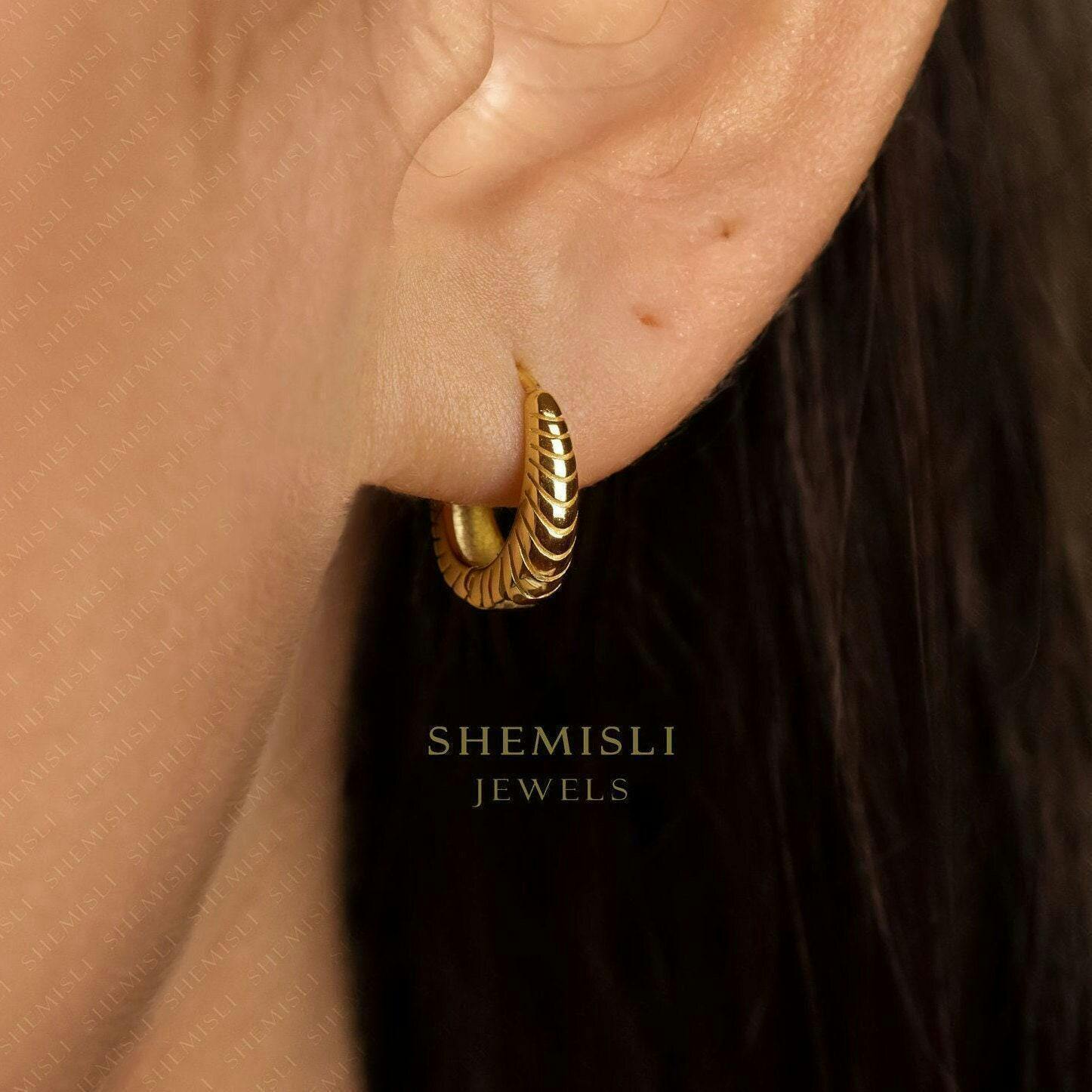 Croissant Hoop Earring, Unisex, Gold, Silver SHEMISLI SH282