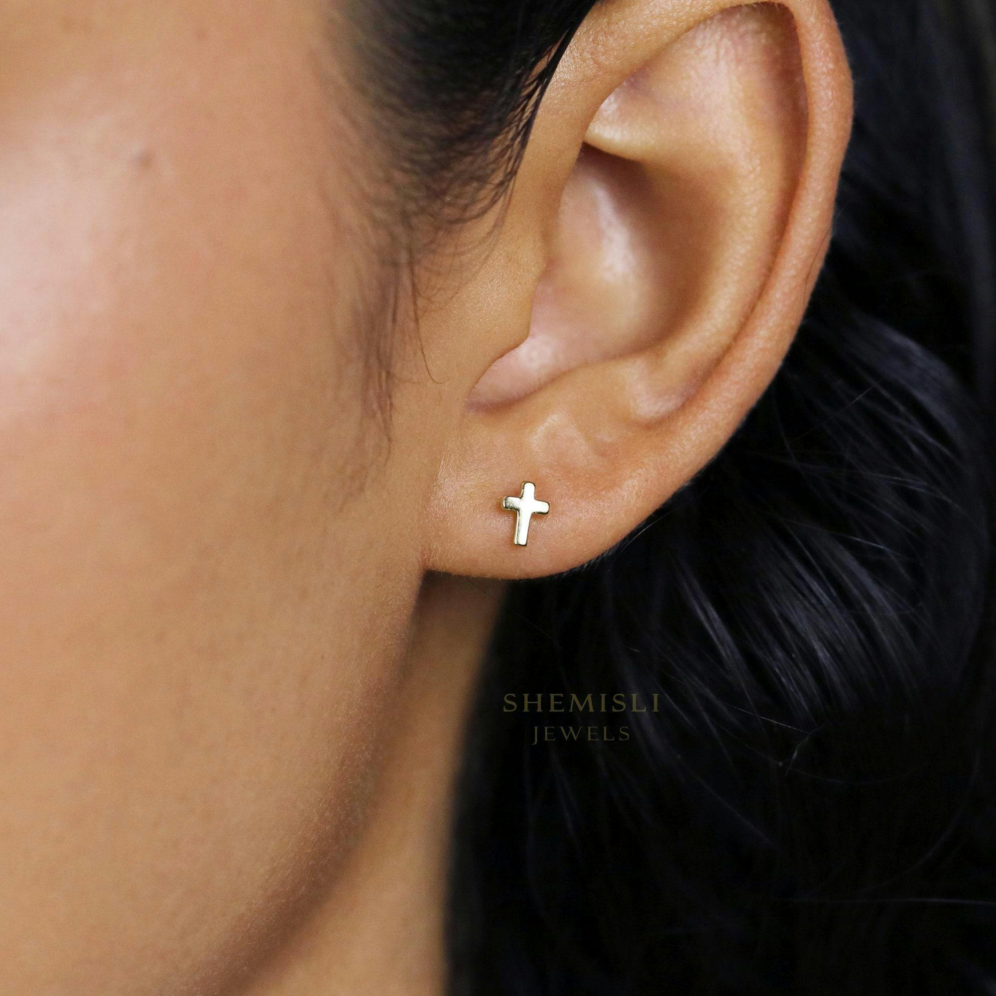 Cross Studs Earring, Unisex, Gold, Silver SHEMISLI SS015