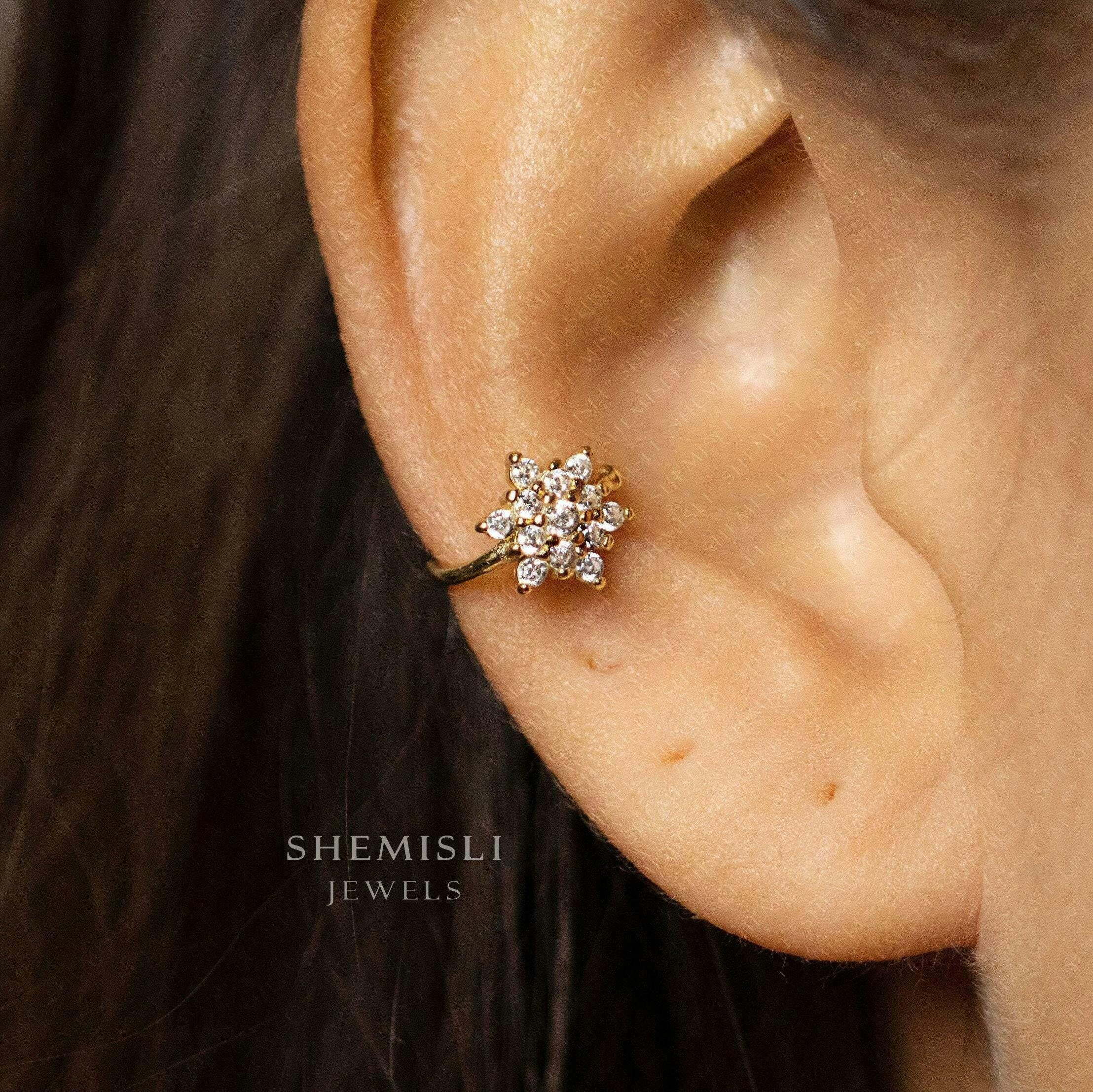 CZ Flower Ear Cuff, No Piercing is Needed, Unisex,