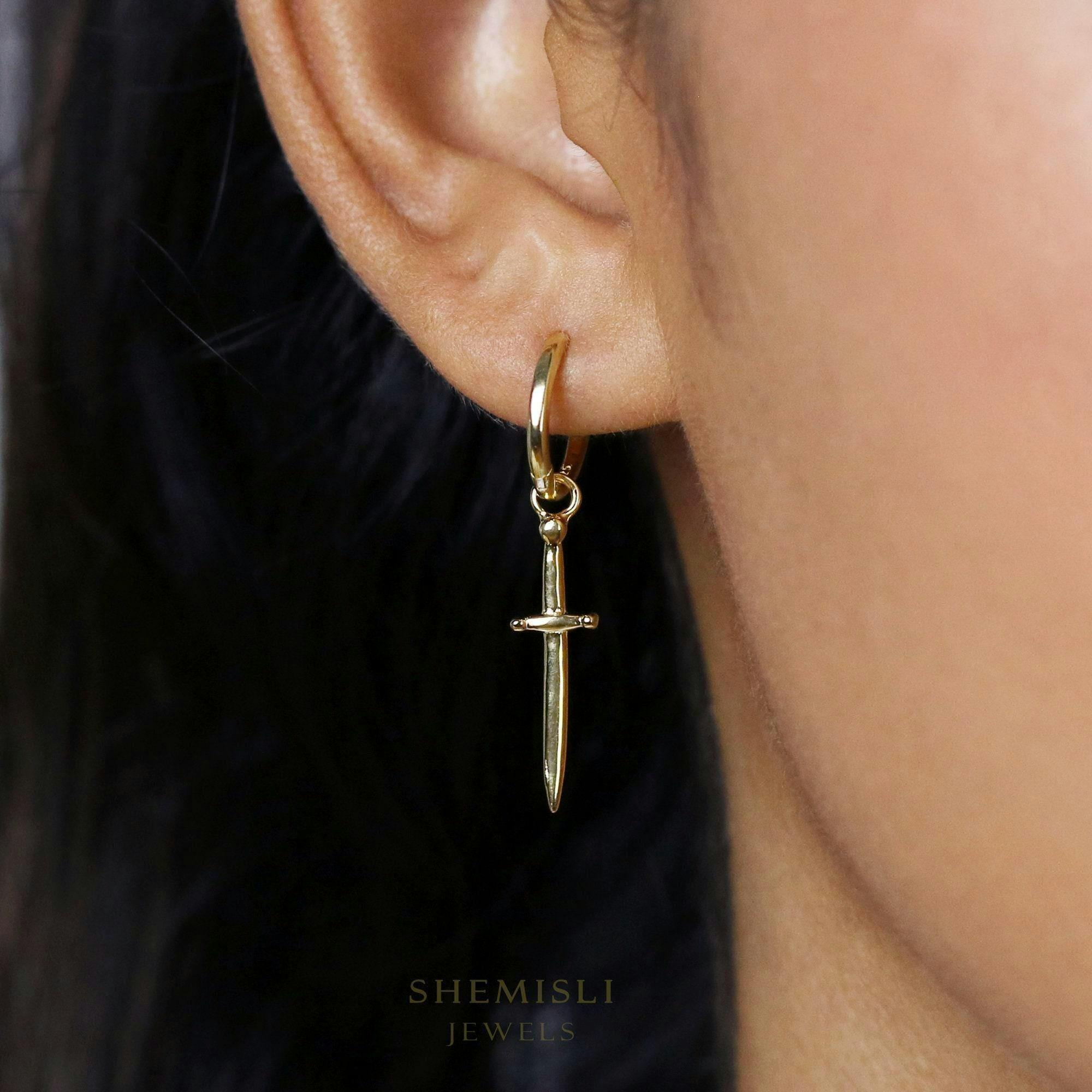 Dagger Sword Dangle Hoop Earring, Unisex, Gold, Silver SHEMISLI