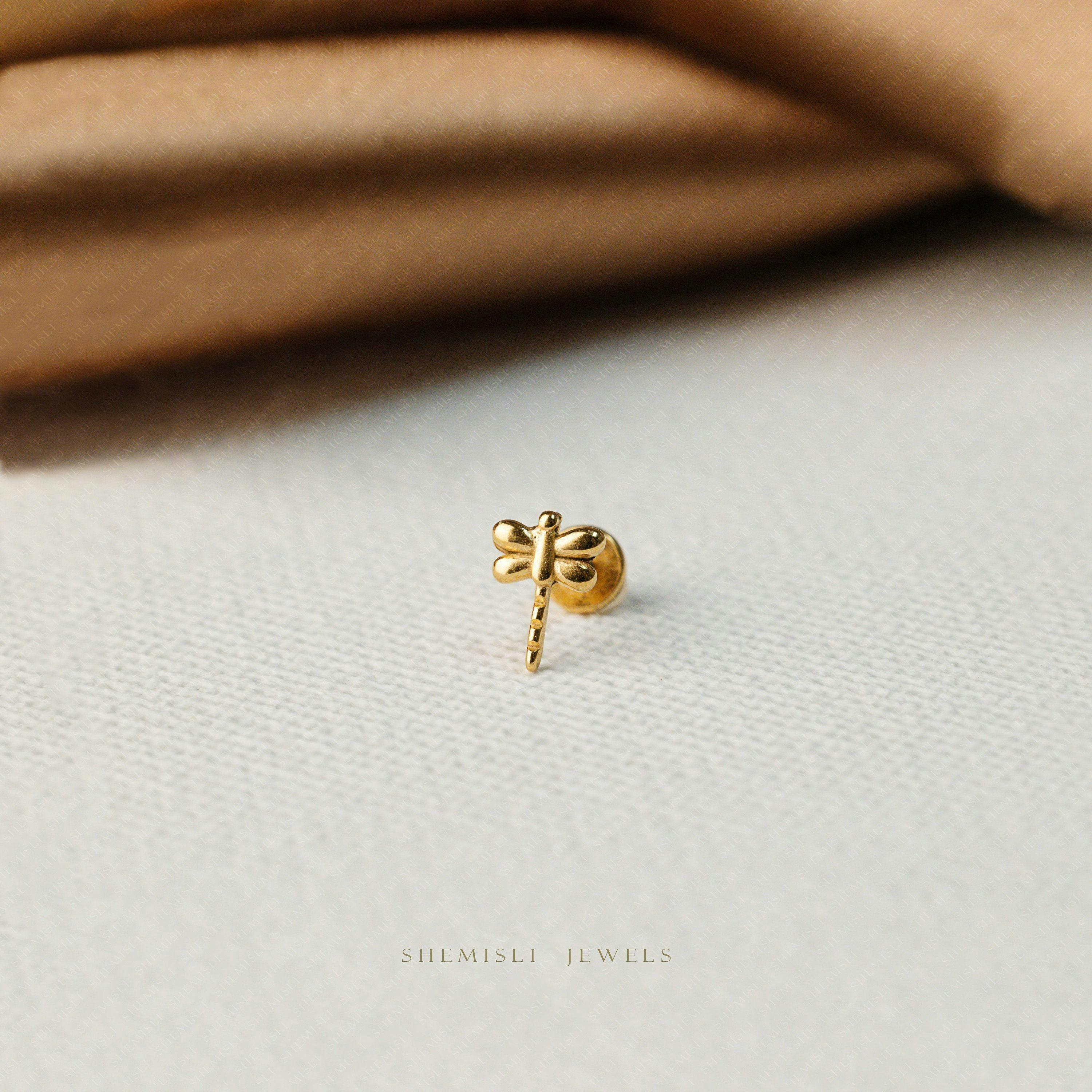 Dainty Dragonfly Threadless Flat Back Tragus Stud, 20,18,16ga, 5-10mm