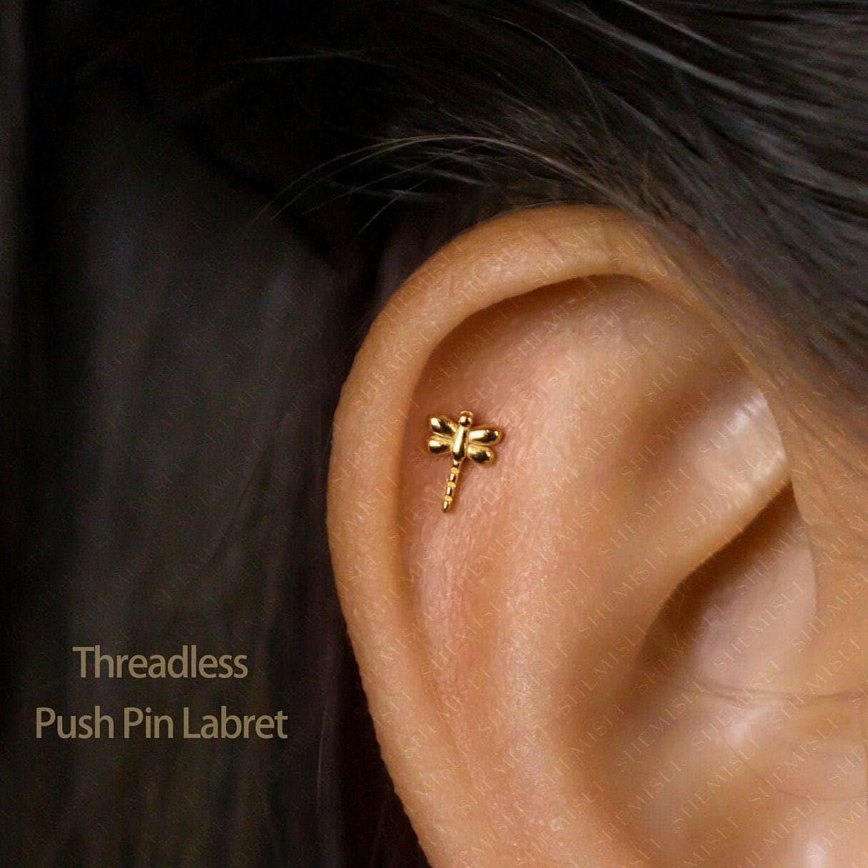 Dainty Dragonfly Threadless Flat Back Earring, 20,18,16ga, 5-10mm Unisex,