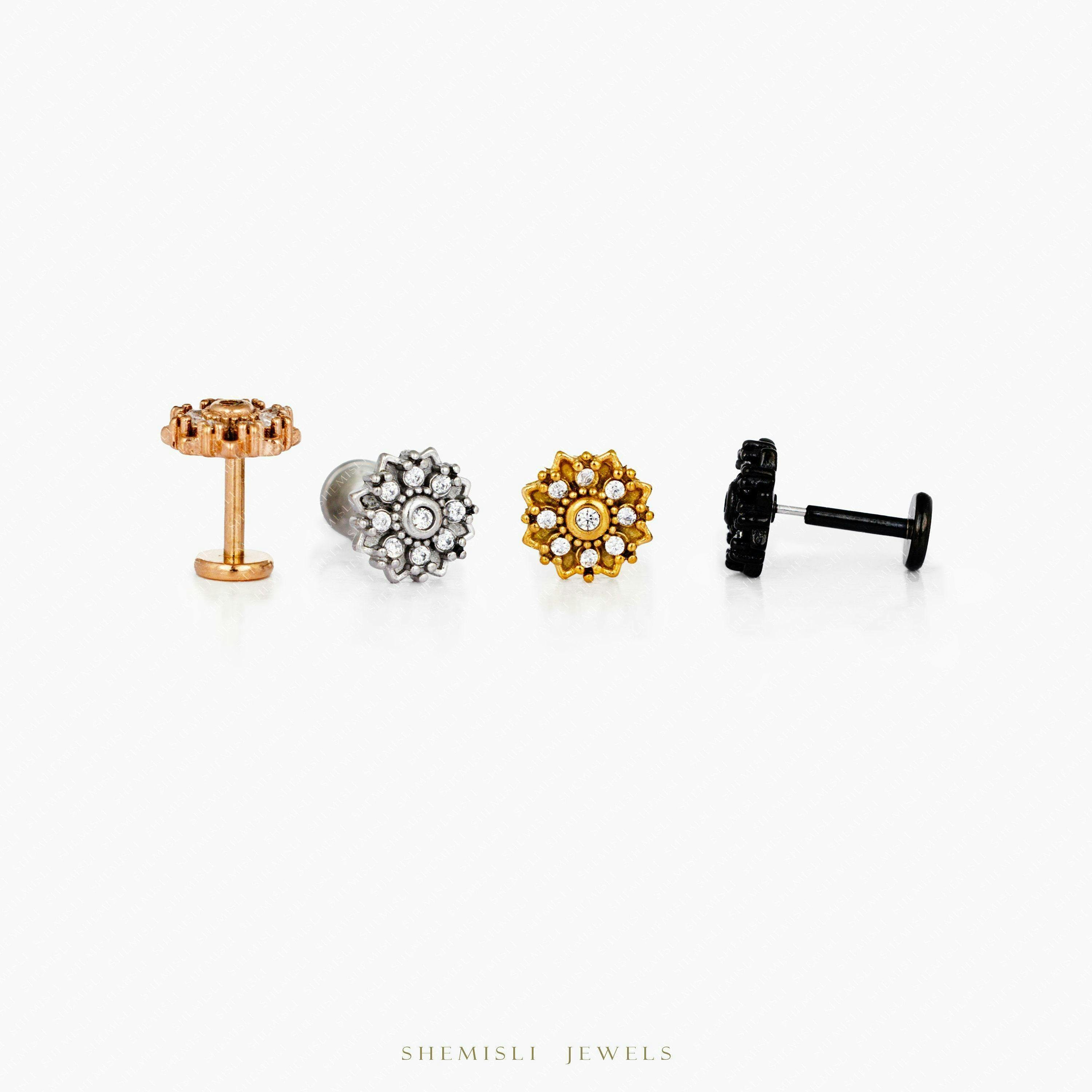 Dainty Flower Threadless Flat Back Earring, 20,18,16ga, 5-10mm Unisex,