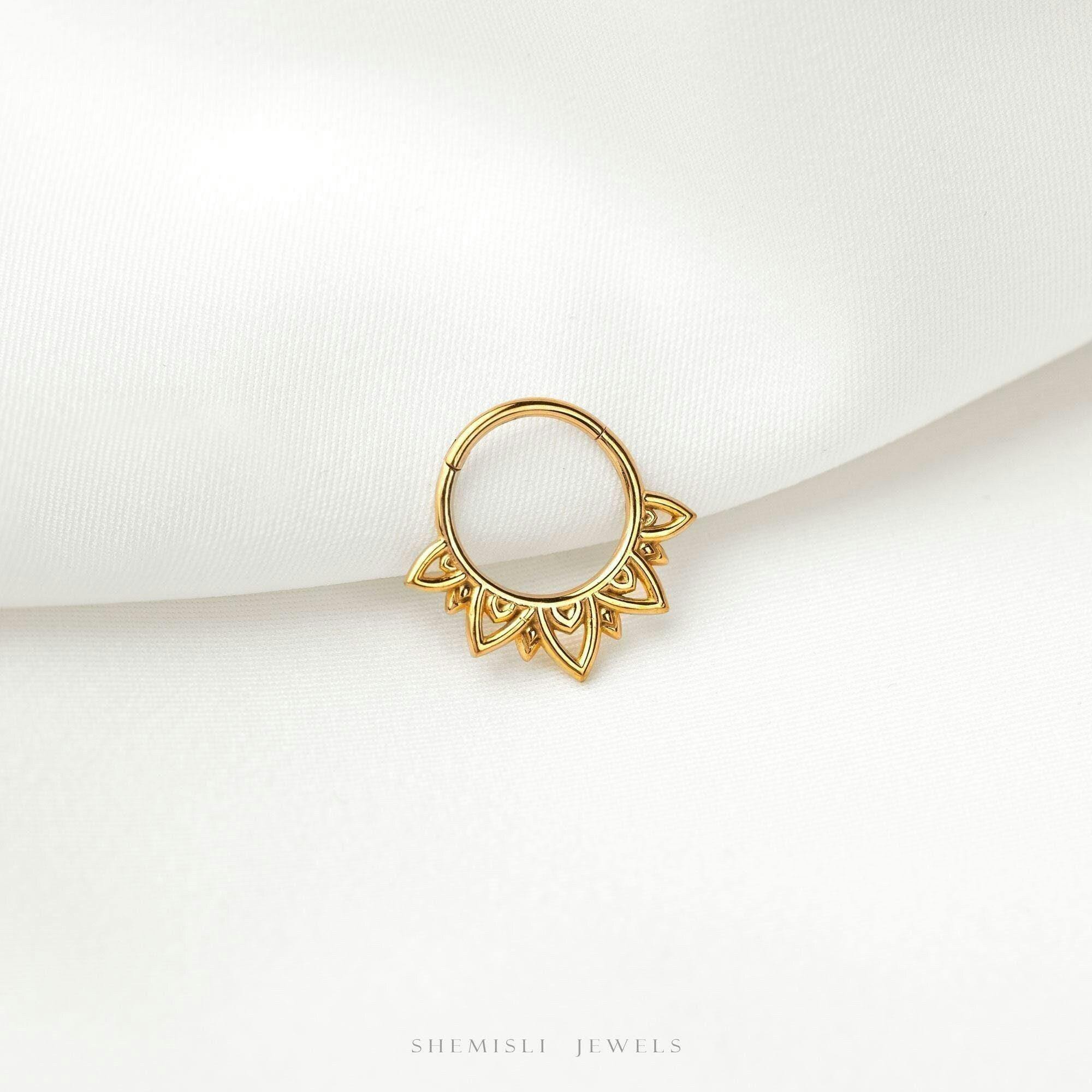 Dainty Lotus Septum Ring, Nose Ring, Hinged Clicker Hoop,