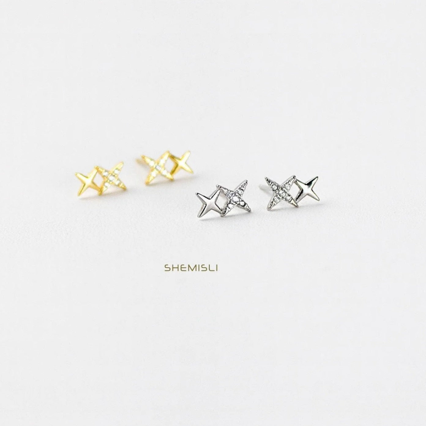 Double Star Stud, Earring, Minimalist Style, SS038