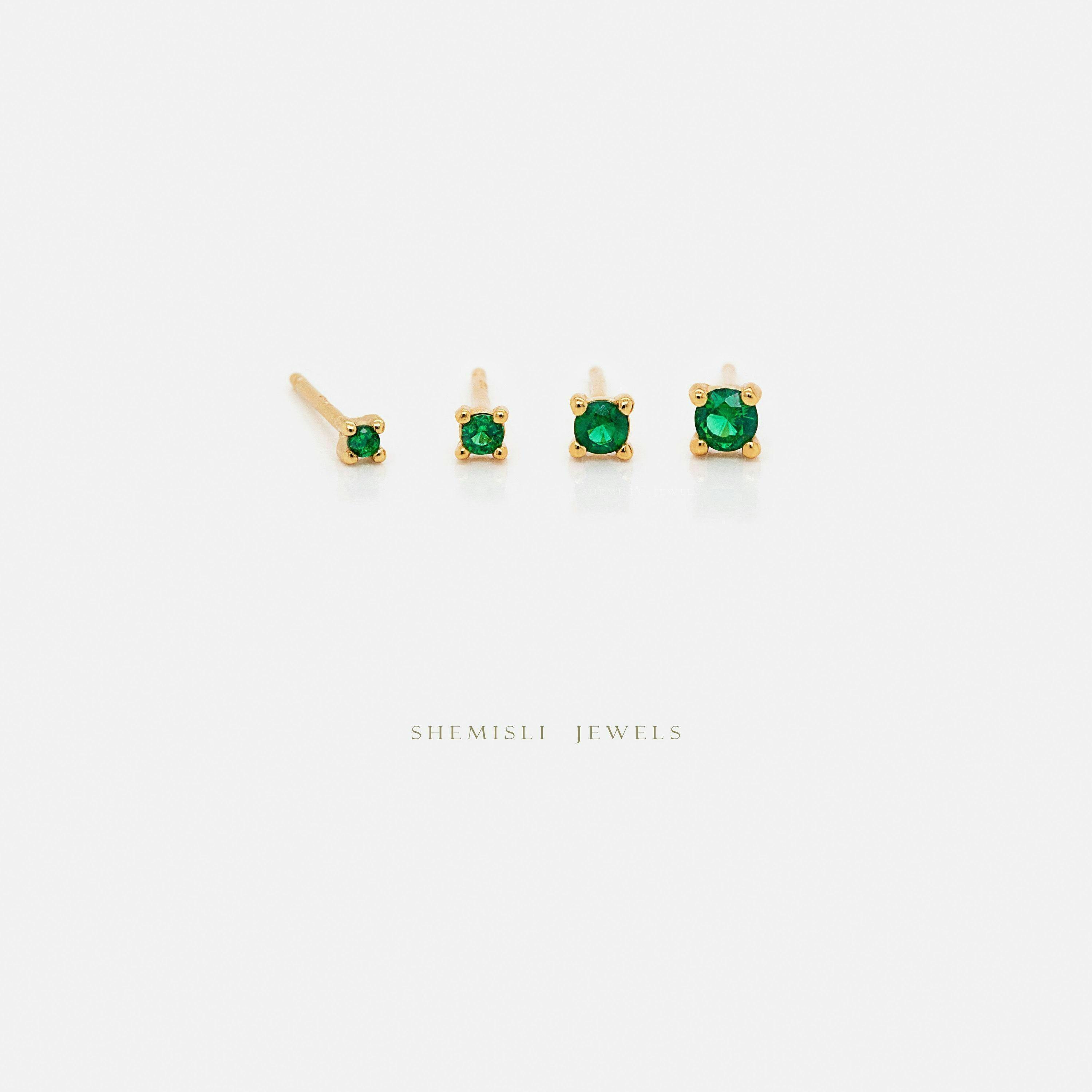 Emerald CZ Stud 1.5, 2, 2.5, 3mm Unisex, Gold,