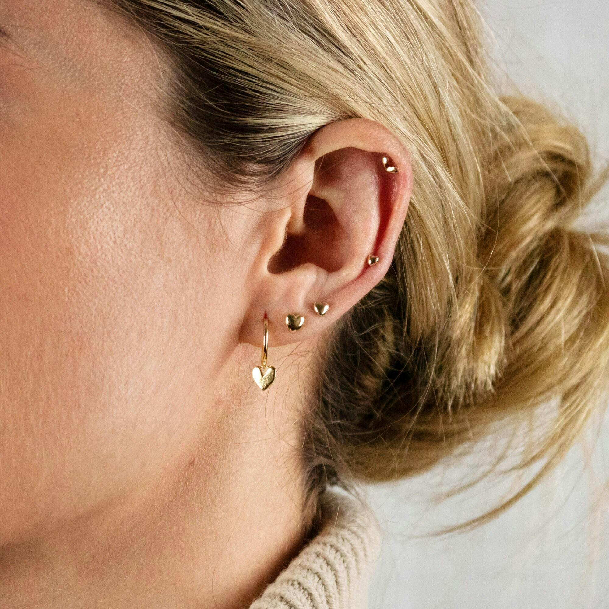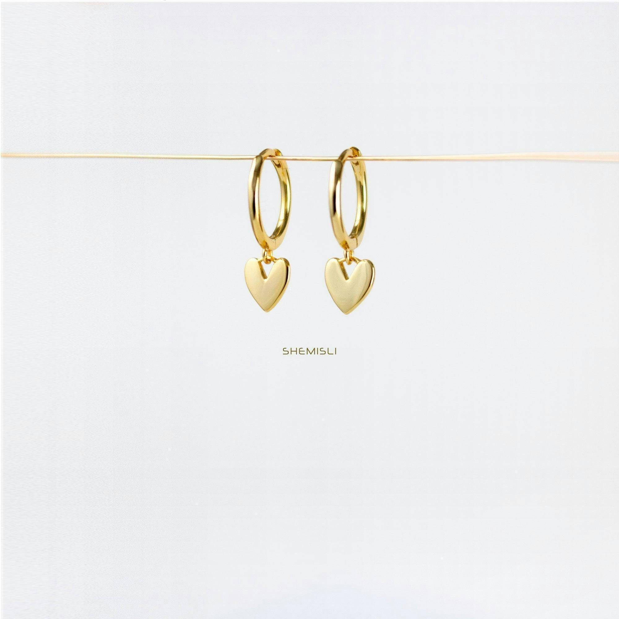 Heart Tag Drop Dangle Hoop Earring, Huggies, Unisex, Gold,