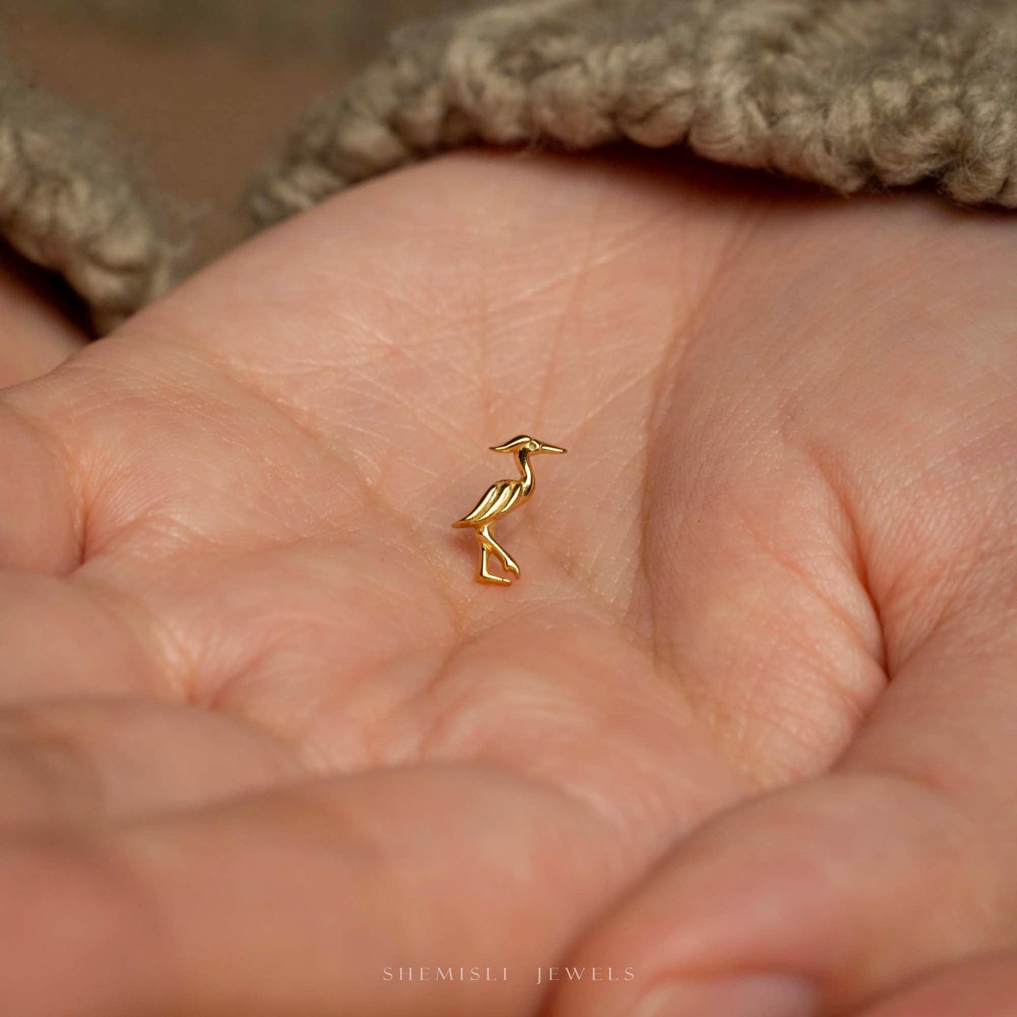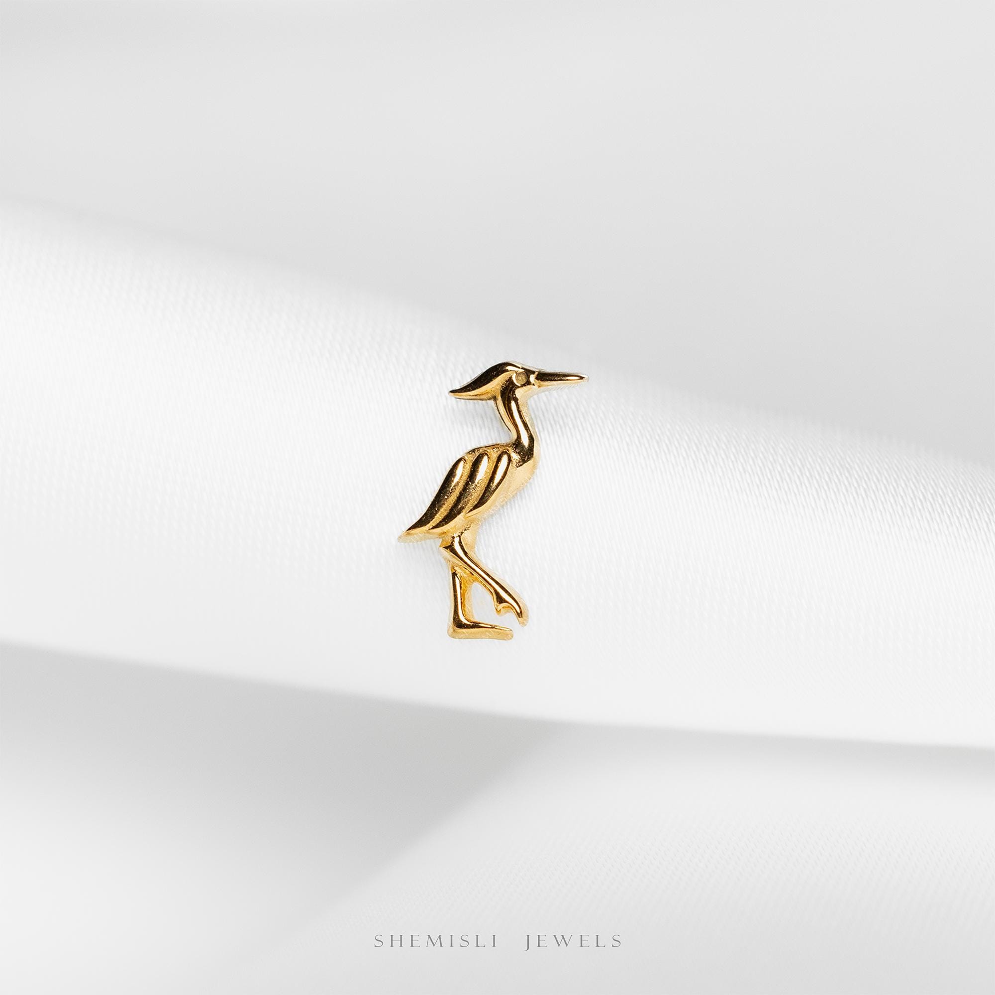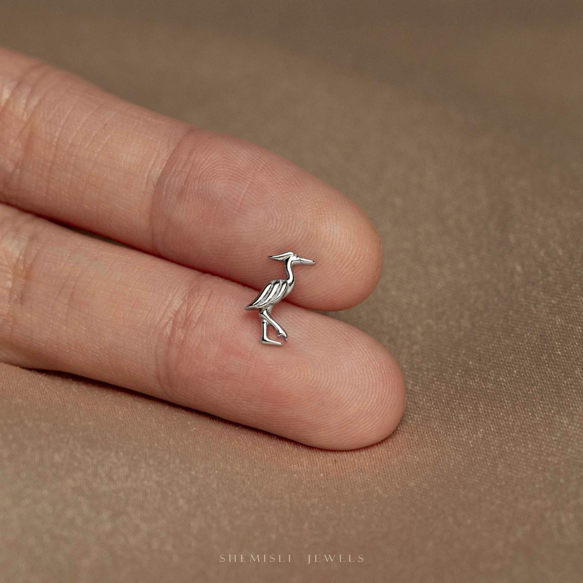 Heron Stud, Threadless Flat Back Earring, Minimalist Style, C-SS1193