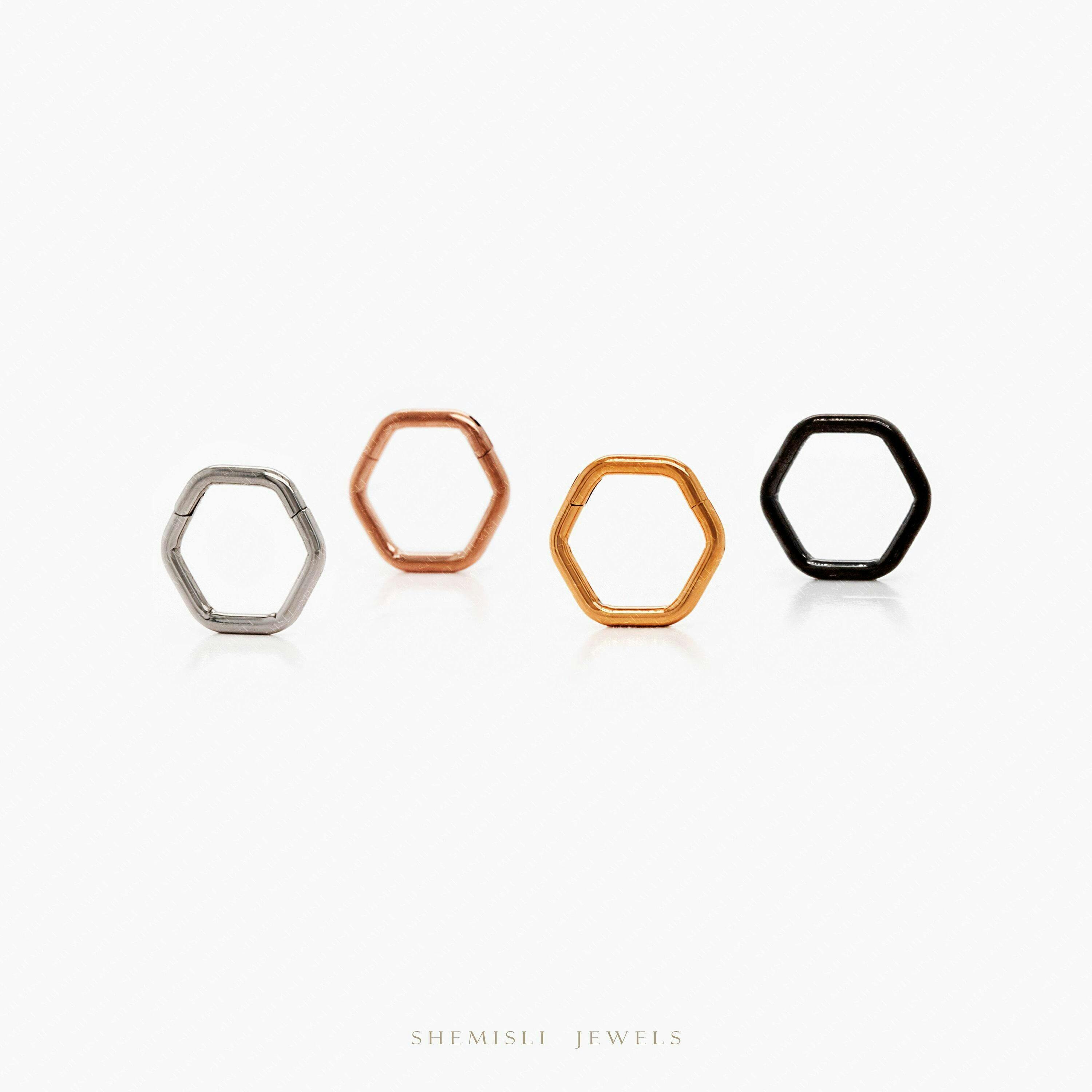 Hexagon Septum Ring, Nose Ring, Daith Hoop, Hinged Clicker