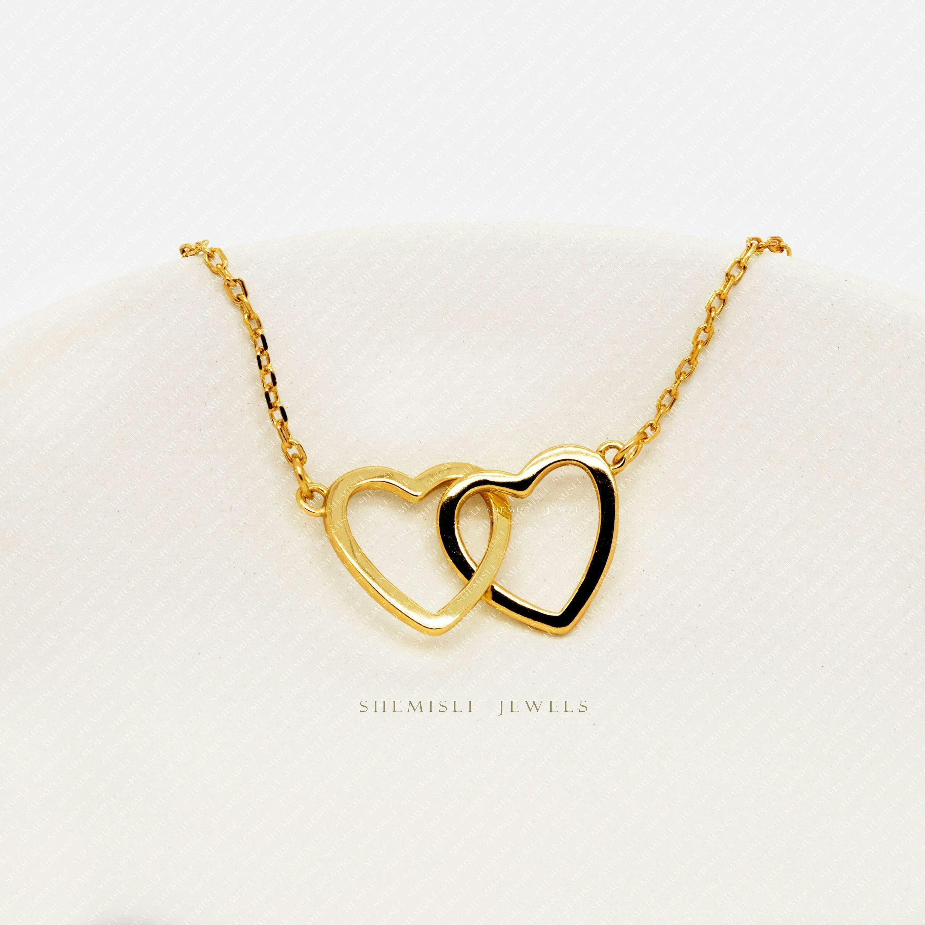 Interlocking Two Hearts Necklace, Unisex, Gold, Silver (16"+2") SHEMISLI