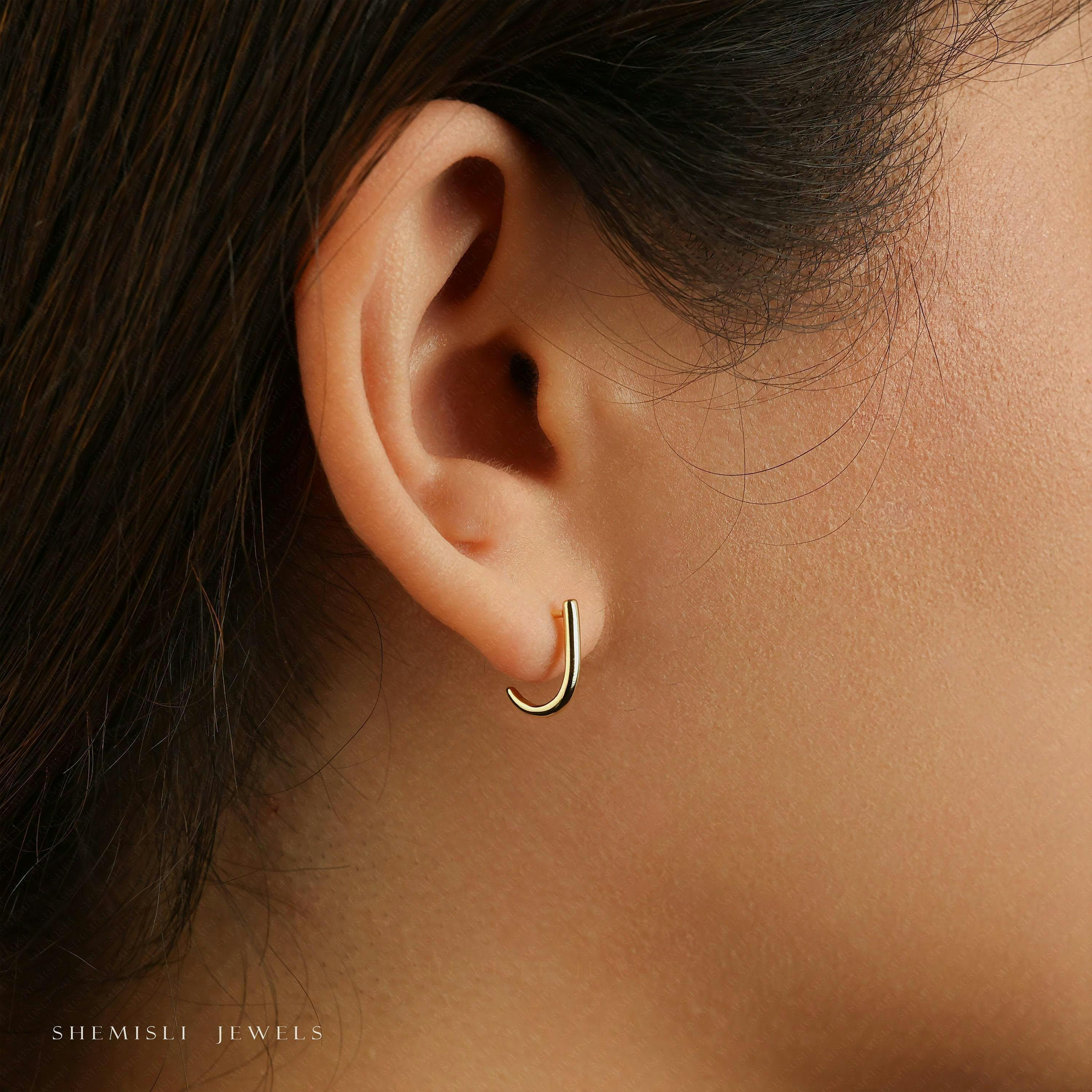 L Shape Small Bar Stud, Hook Hoop Earring, Unisex,