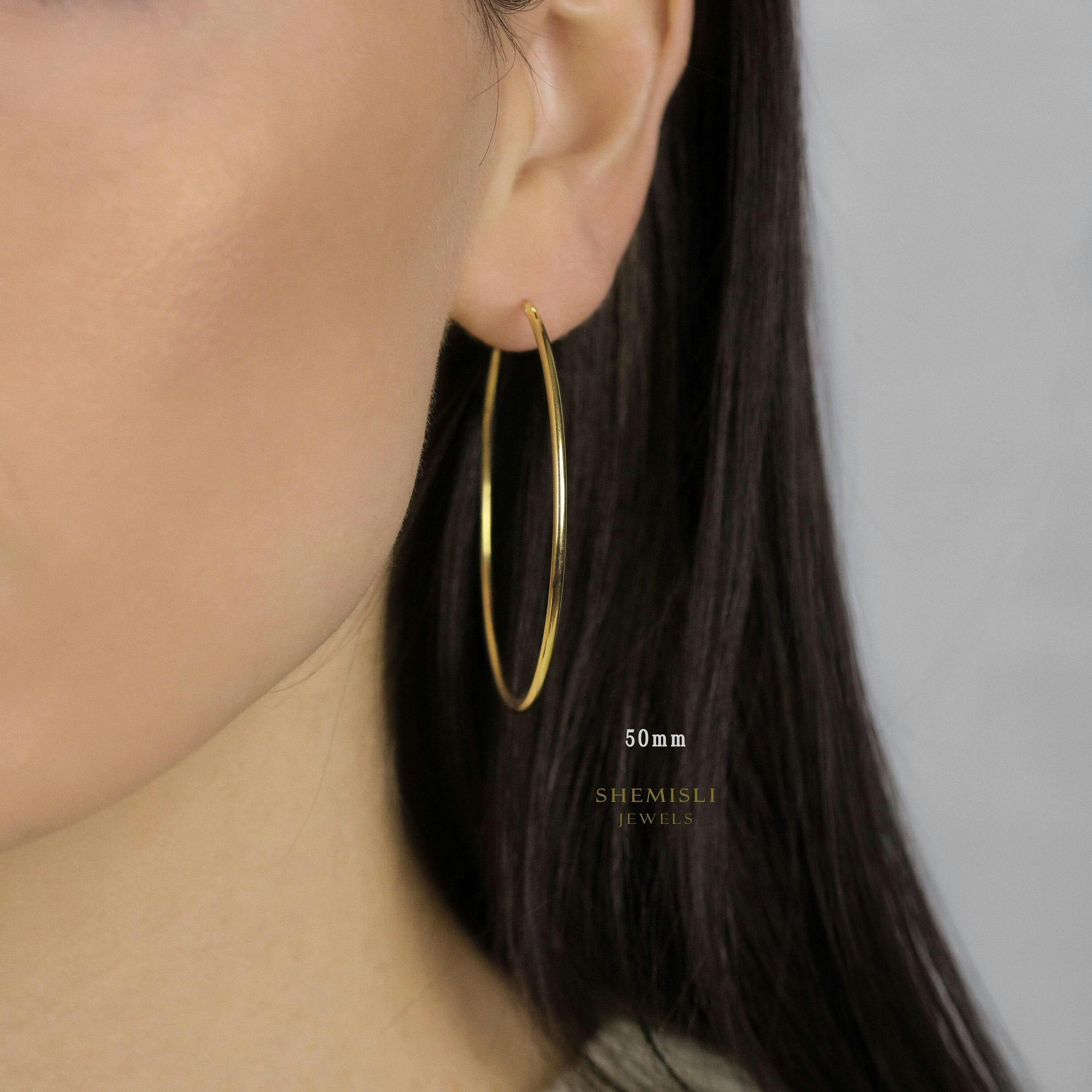 Large Thin Hoop, Light weight Huggies, Unisex, Gold, Silver