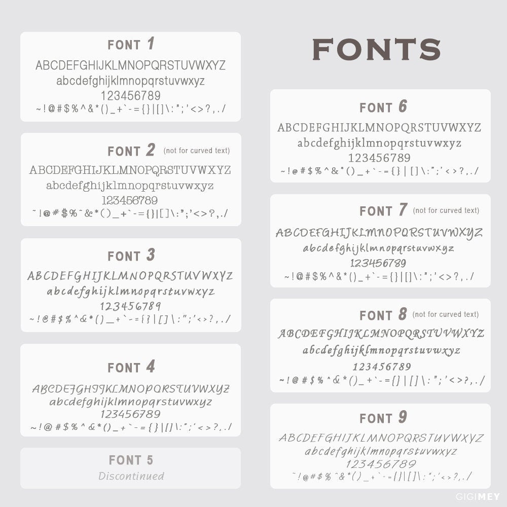 • Which font (options in one of the listing images)