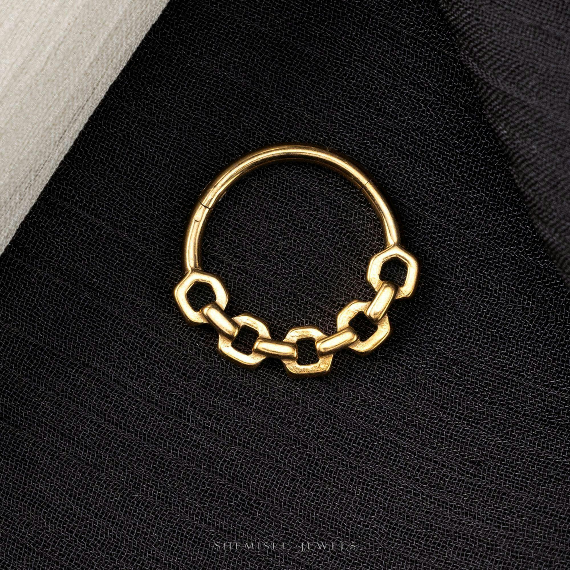 Linked Chain Septum Ring, Nose Ring, Daith Ring, Hinged