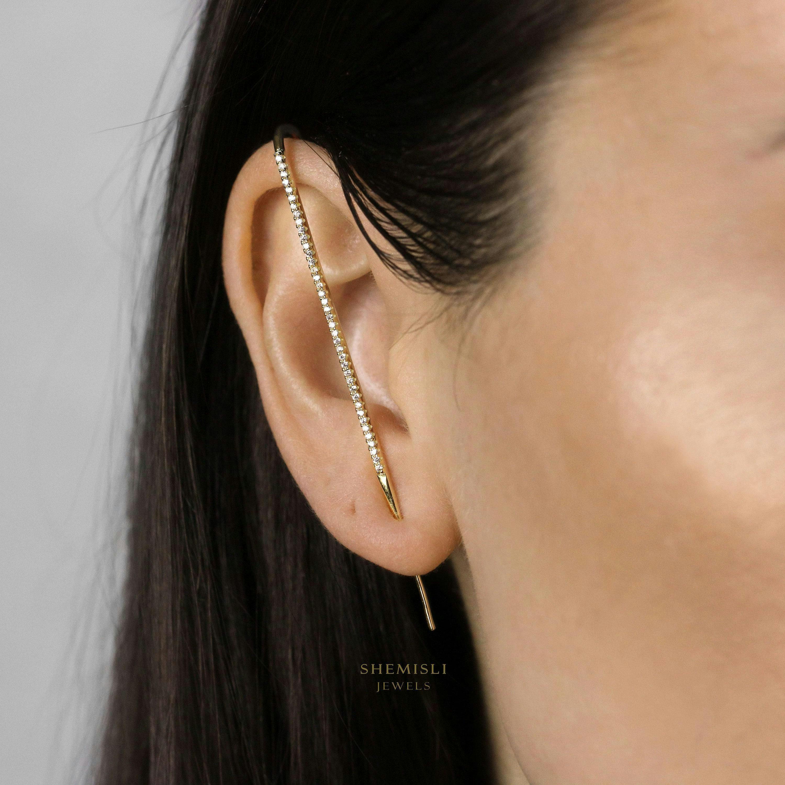 Long Stone Climber Earring for Earlobe Piercing, Fake Helix