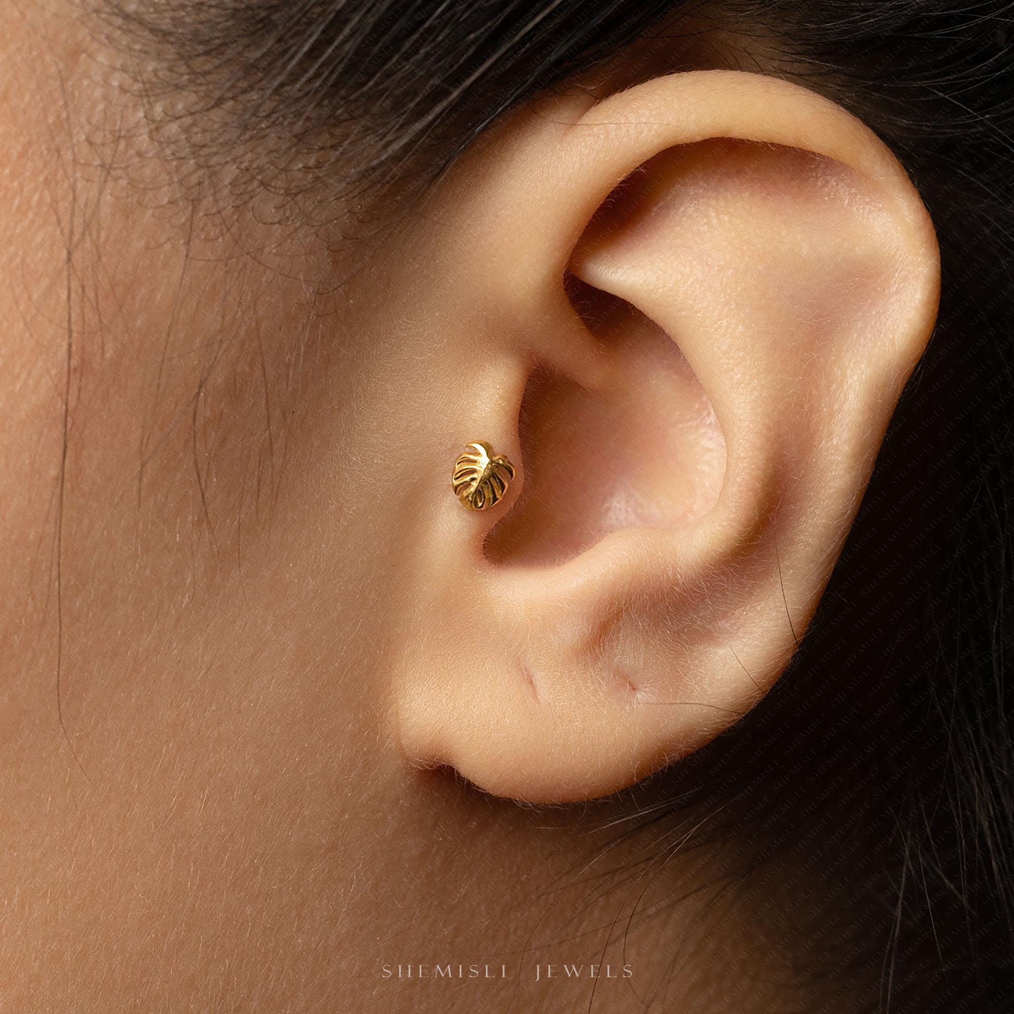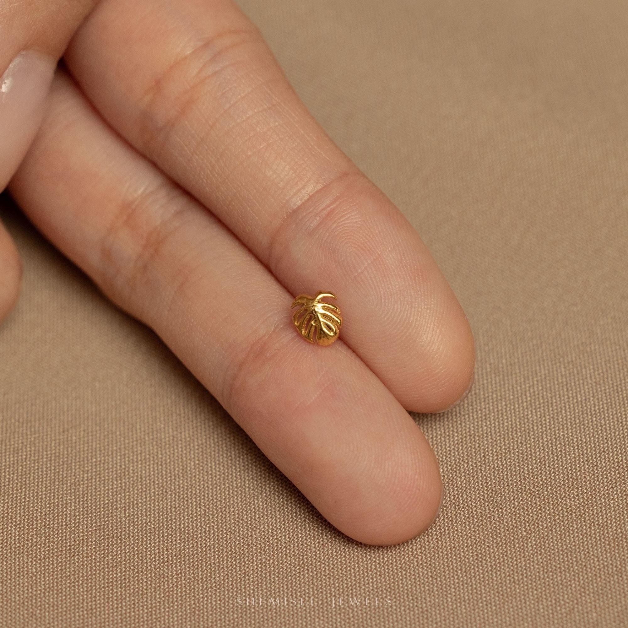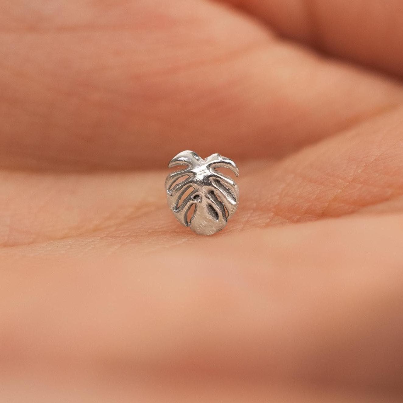 Monstera Tropical Stud, Threadless Flat Back Earring, Minimalist Style,