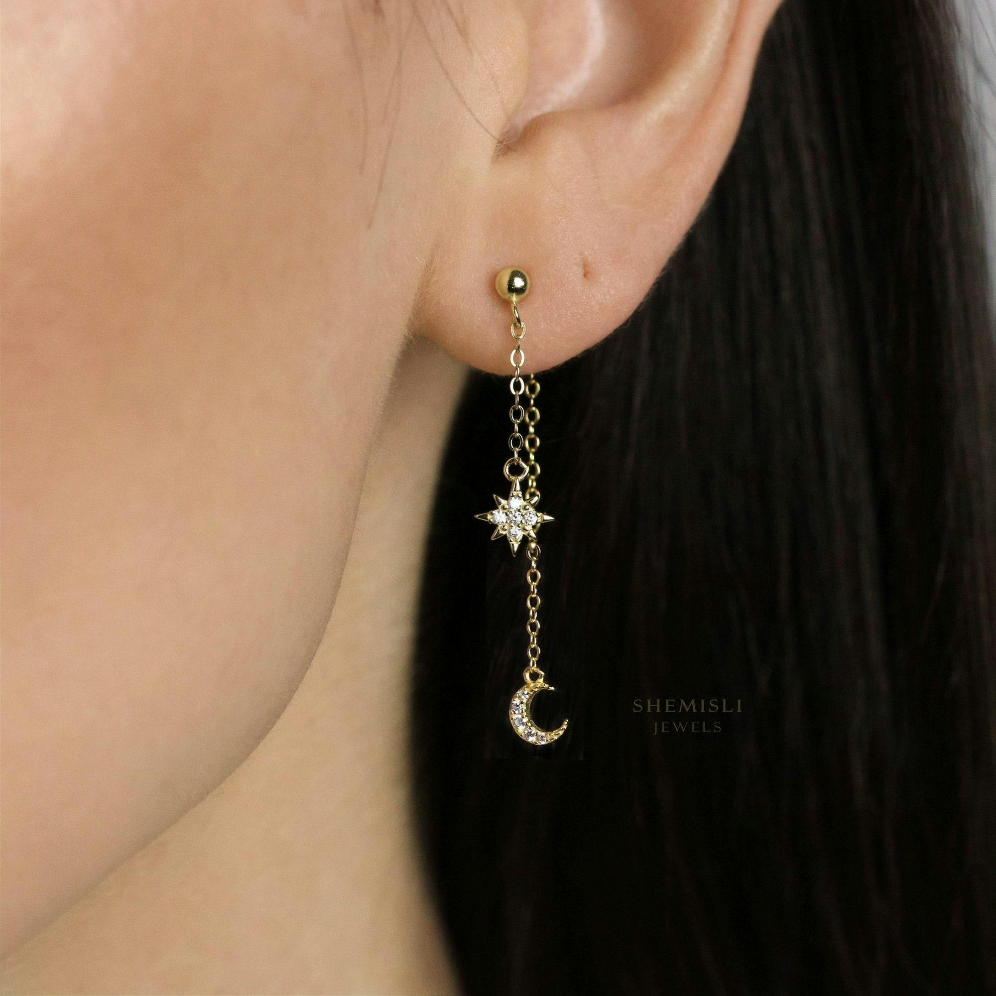 Moon and Star Front and Back Earring, Mismatched Celestial