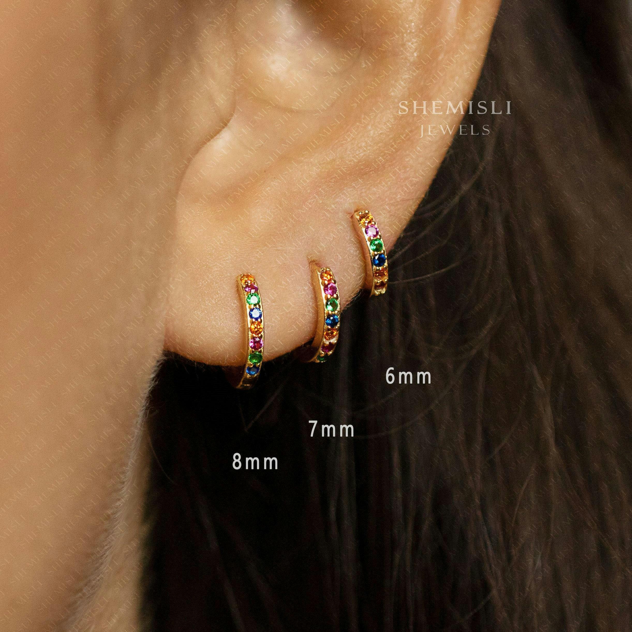 Multicolored Stone Hoop Earring, Rainbow Huggies, 6, 7, 8,