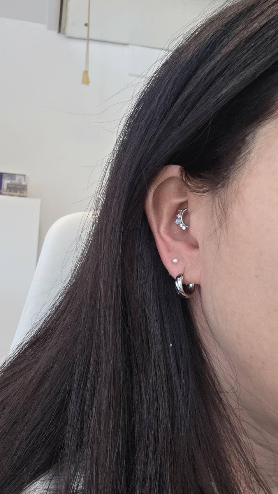 Opal White Stone Daith Ring, Hinged Clicker Hoop, 16ga