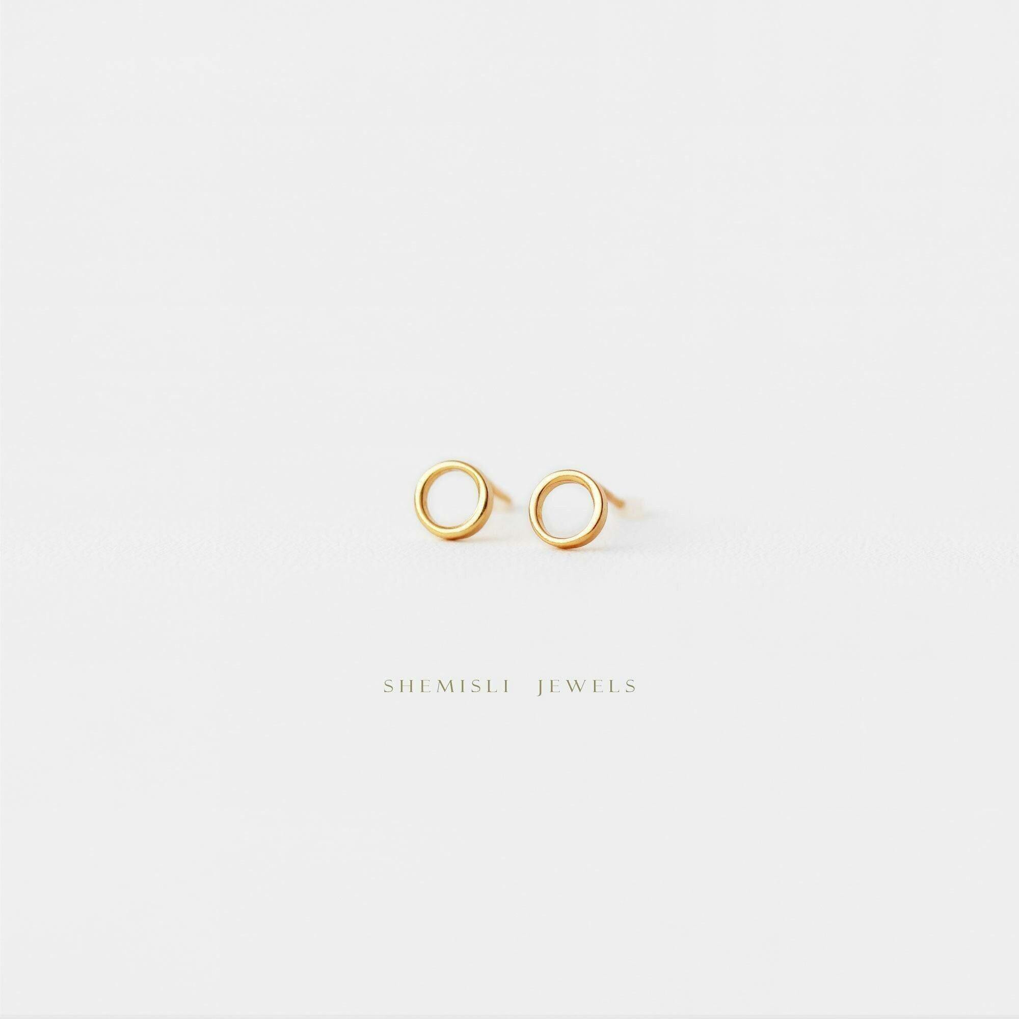 Open Circle Stud Earring, Unisex, Gold, Silver SHEMISLI -