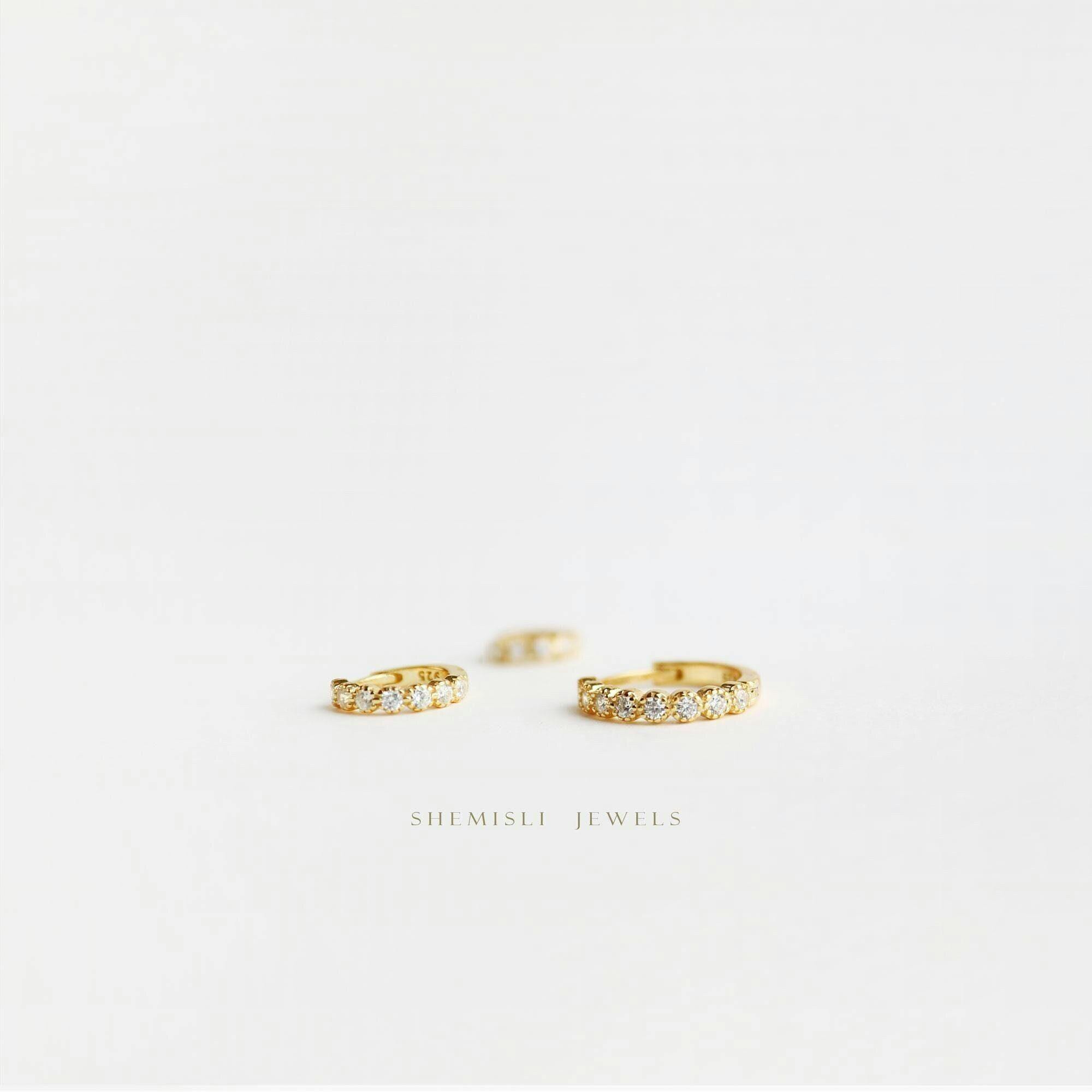 Simple Clear CZ Conch Hoop Earring, White Stone Huggies,