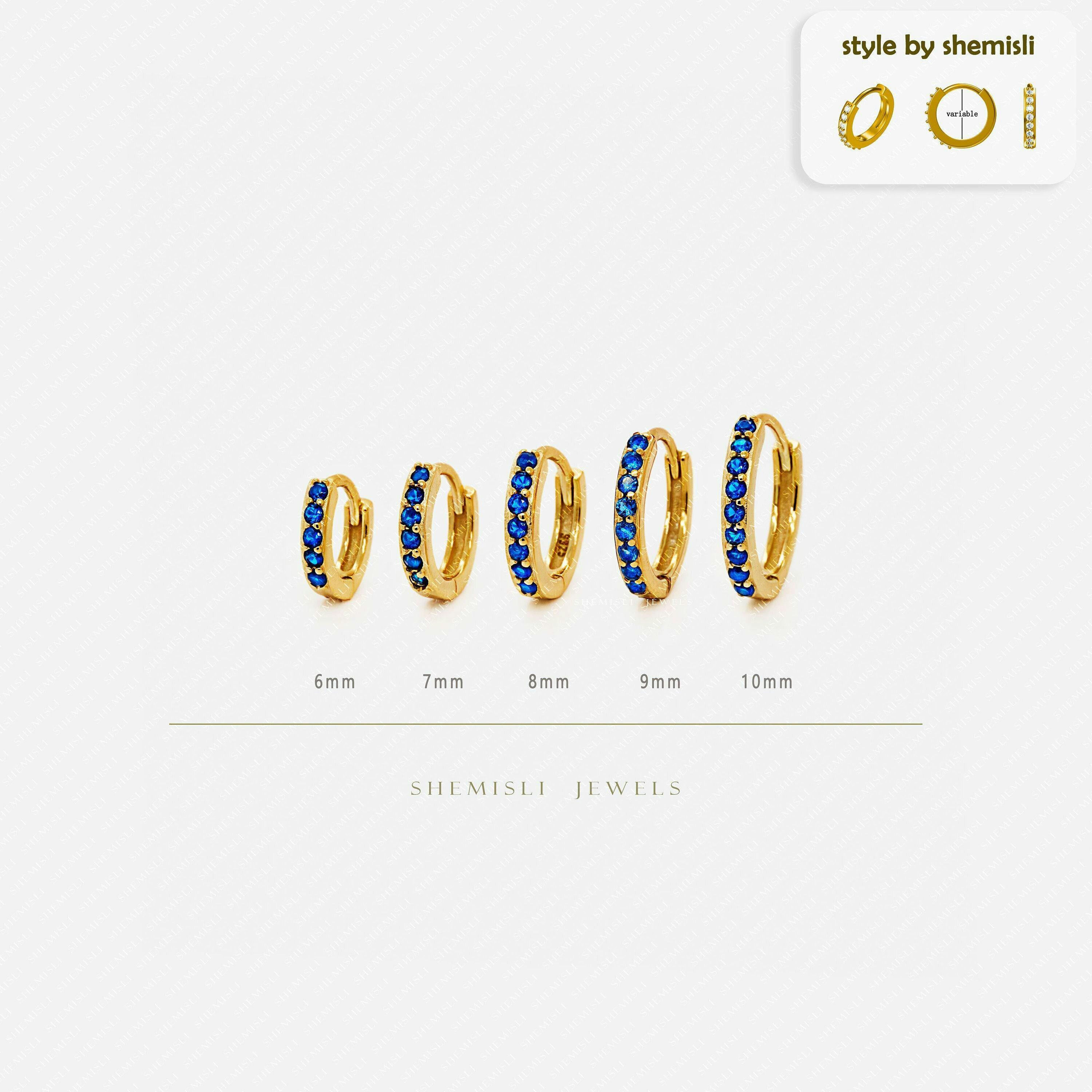 Simple Sapphire CZ Hoop Earring, Huggies, Unisex, Gold, Silver