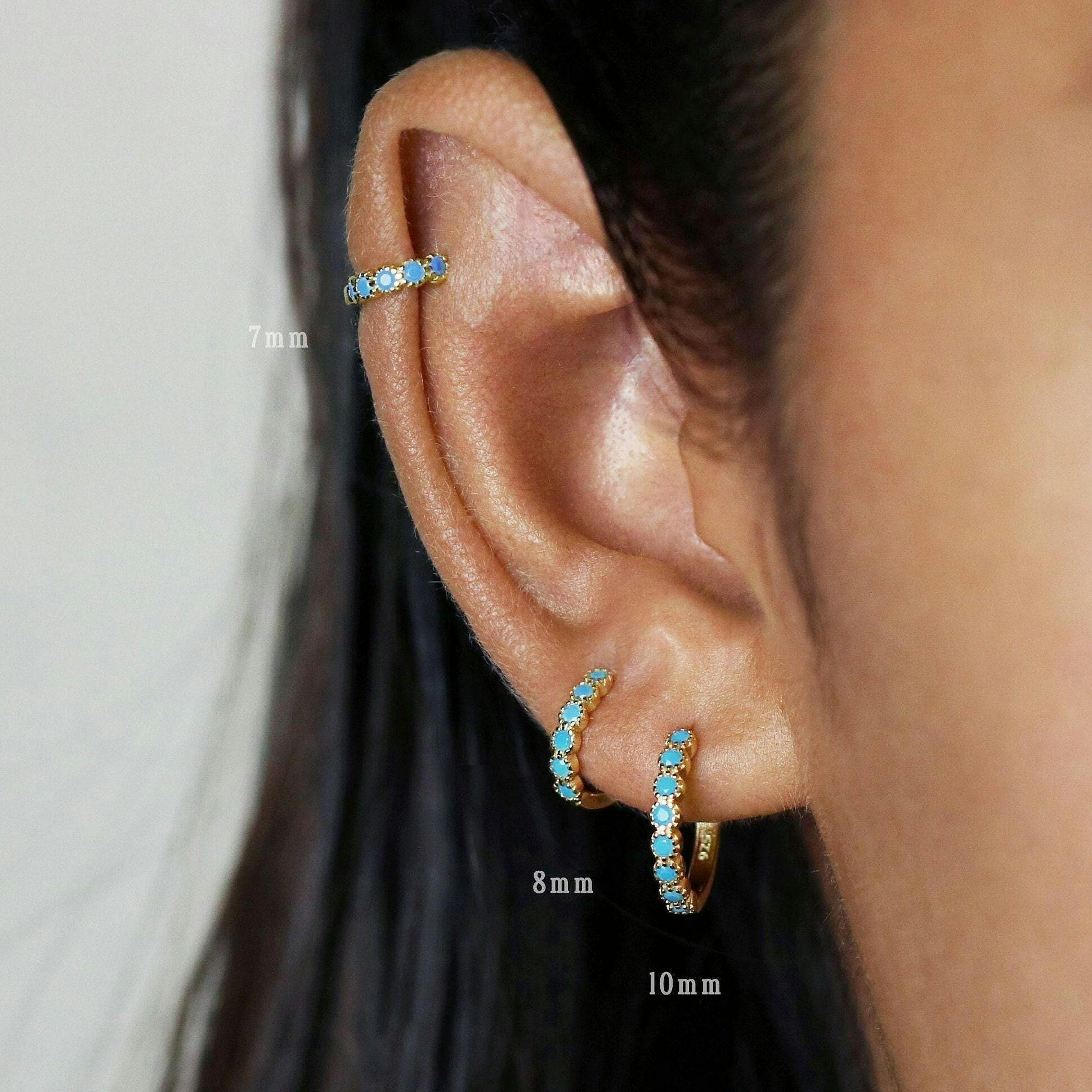 Simple Turquoise cz Hoop Earring, Huggies, Unisex, Gold, Silver