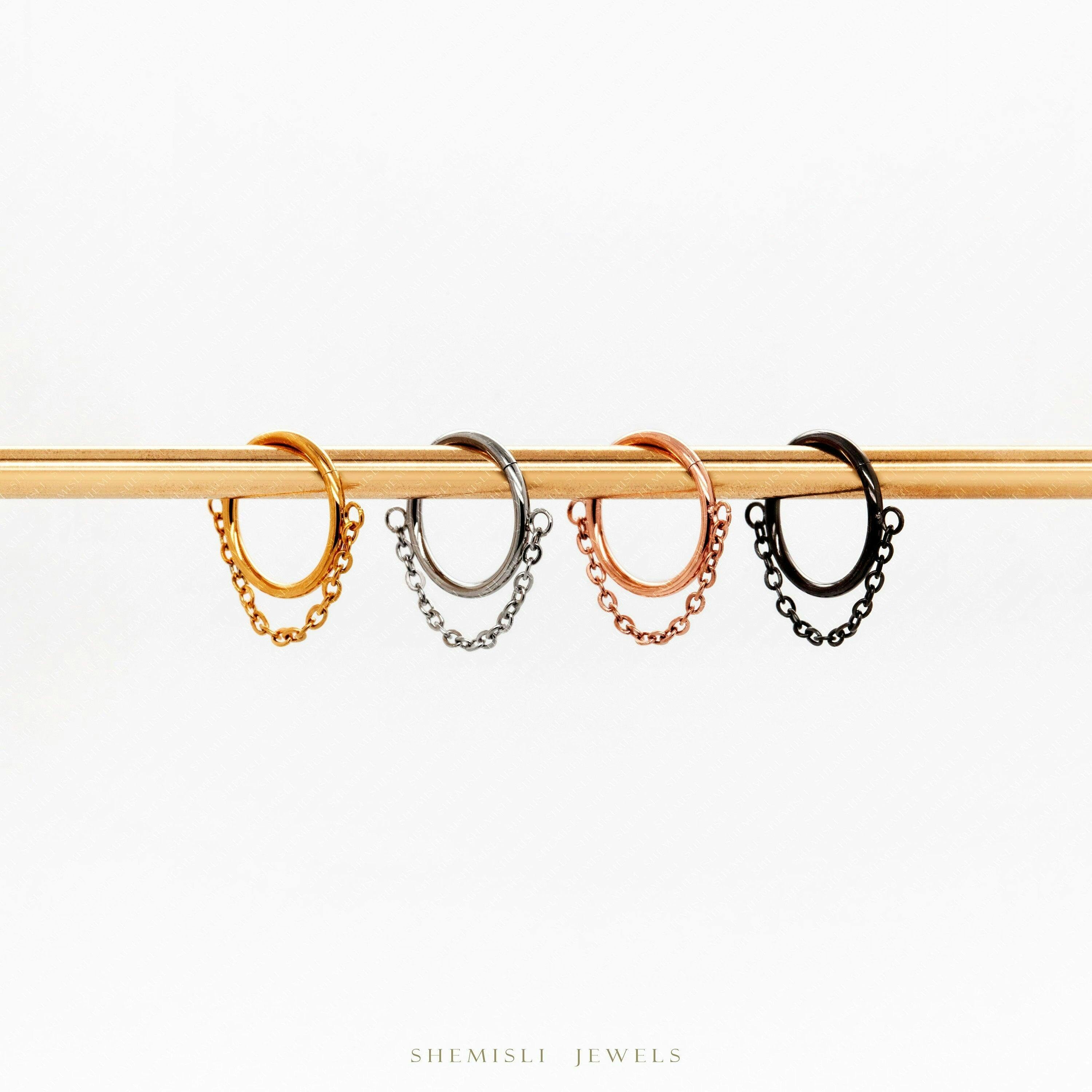 Single Chain Septum Ring, Nose Ring, Hinged Clicker Hoop,