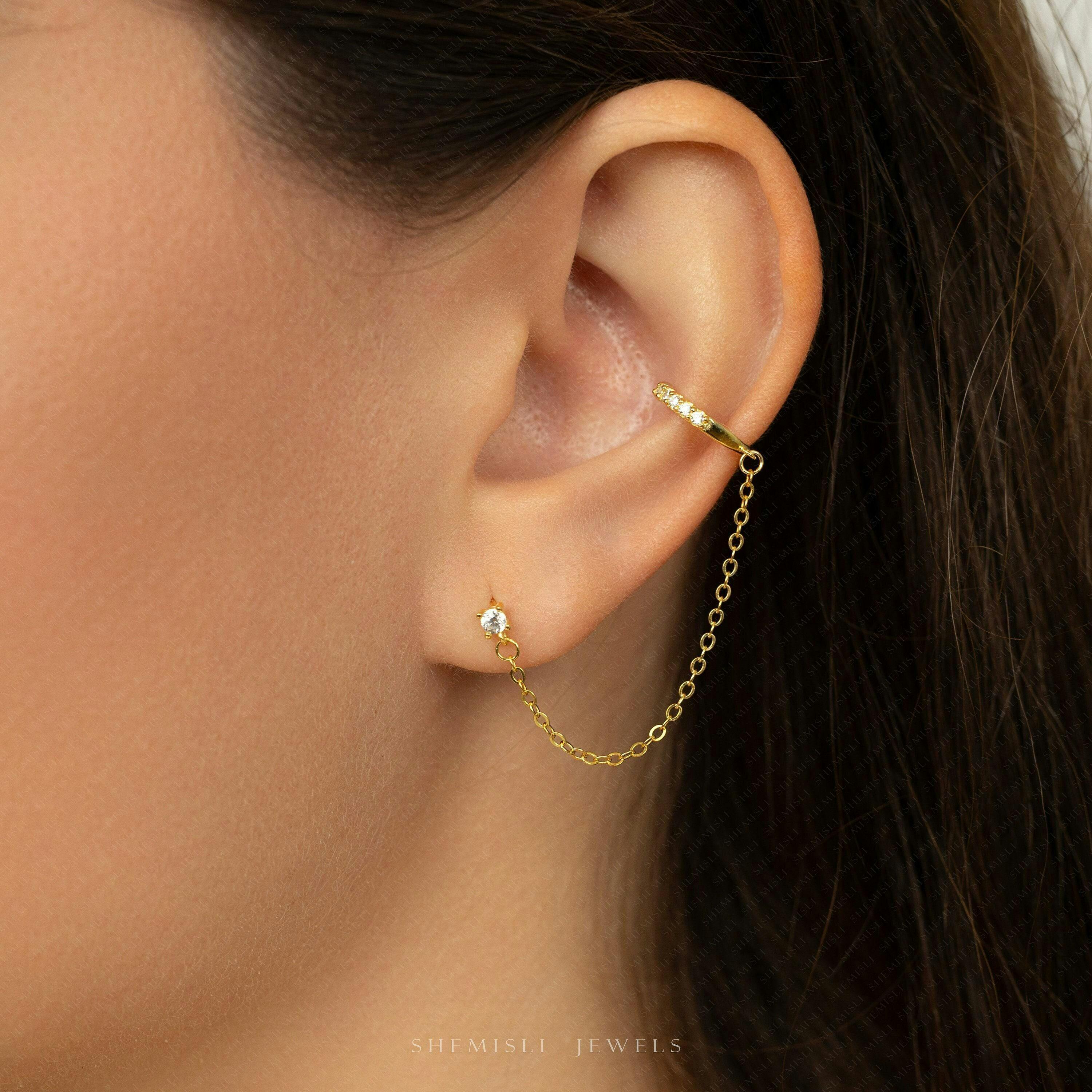 Stud and Chain Ear Cuff, Conch Cuff, Unisex, Gold,