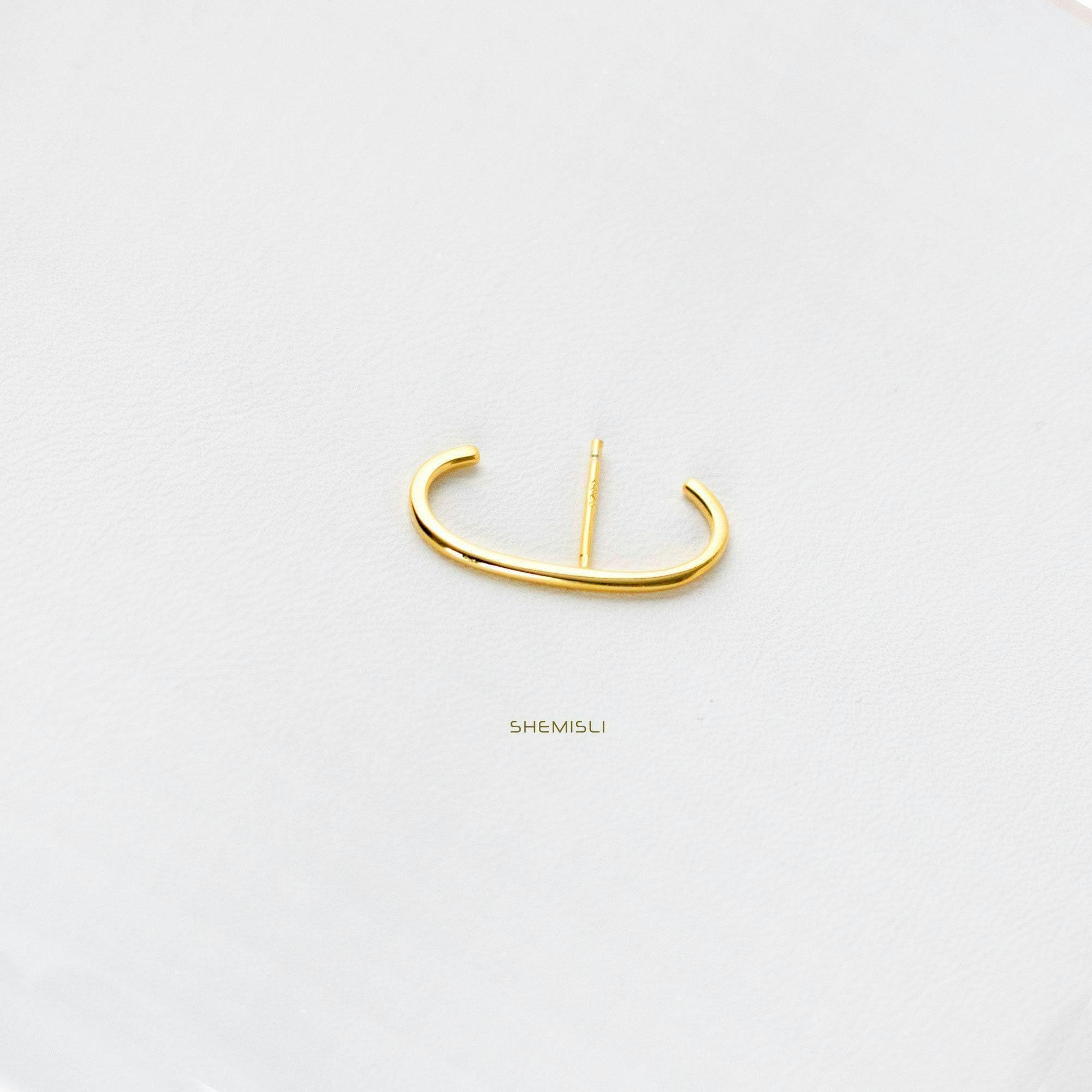 Stud Lobe cuff earring, Unisex, Gold, Silver SHEMISLI -