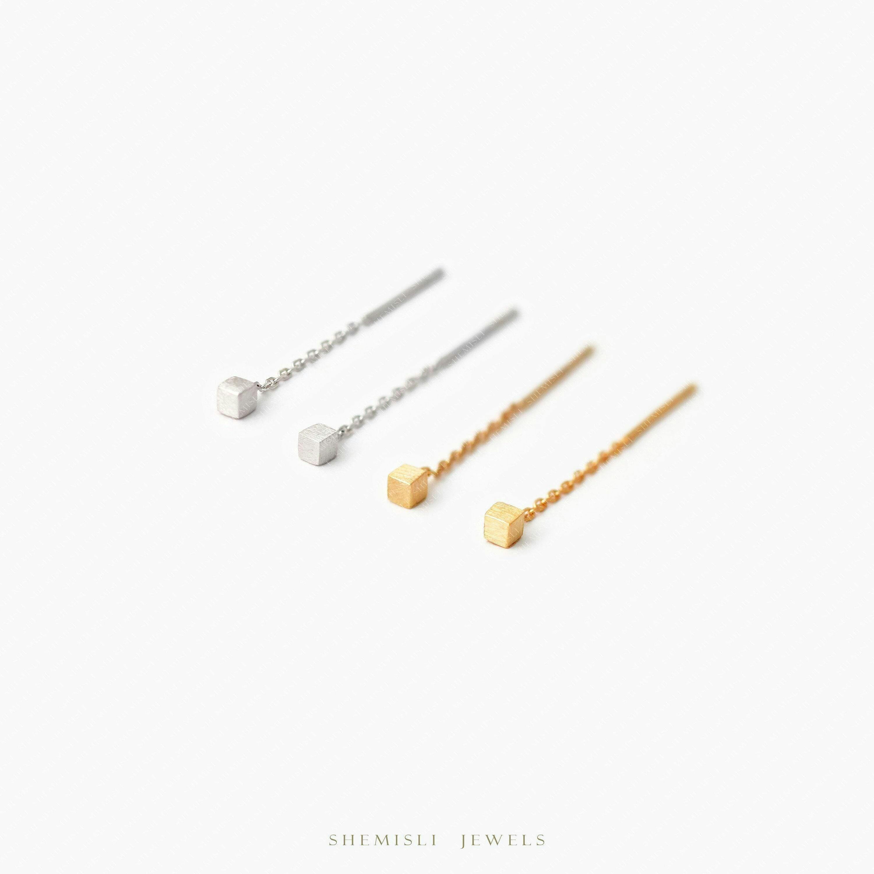 Super Tiny Cuboid Ear Threader, Unisex, Gold, Silver SHEMISLI