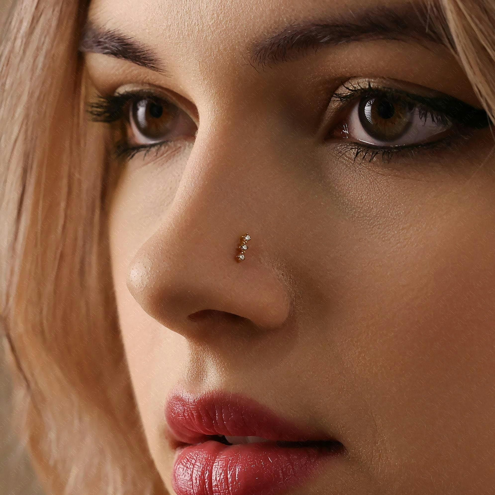 Super Tiny Triple Stones Threadless Flat Back Nose Stud,
