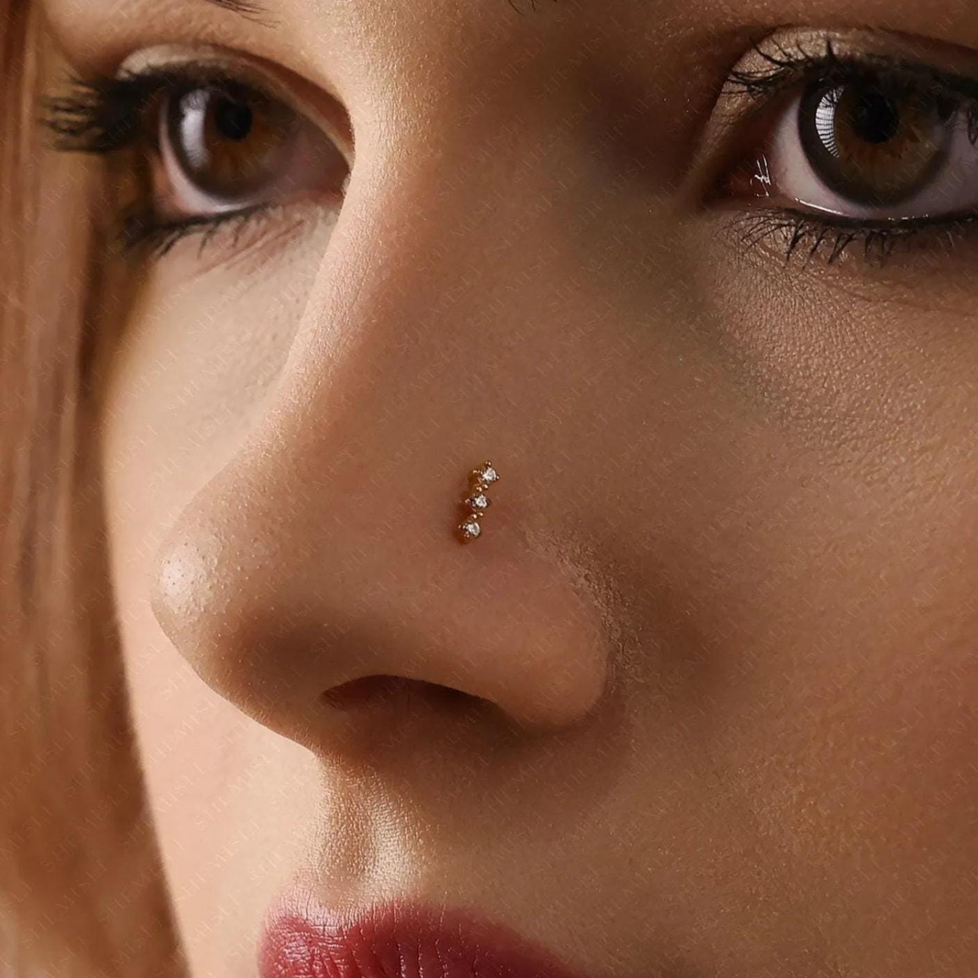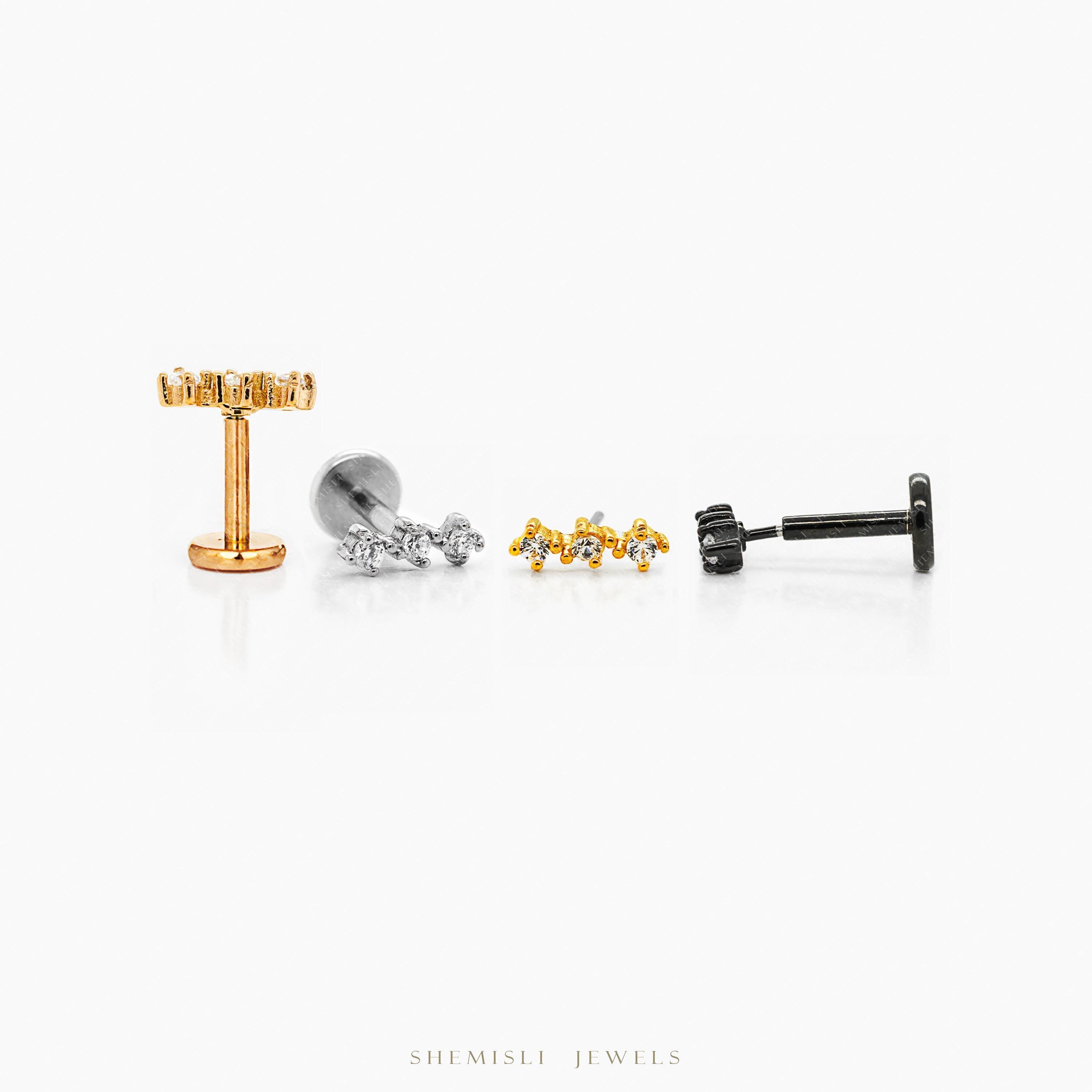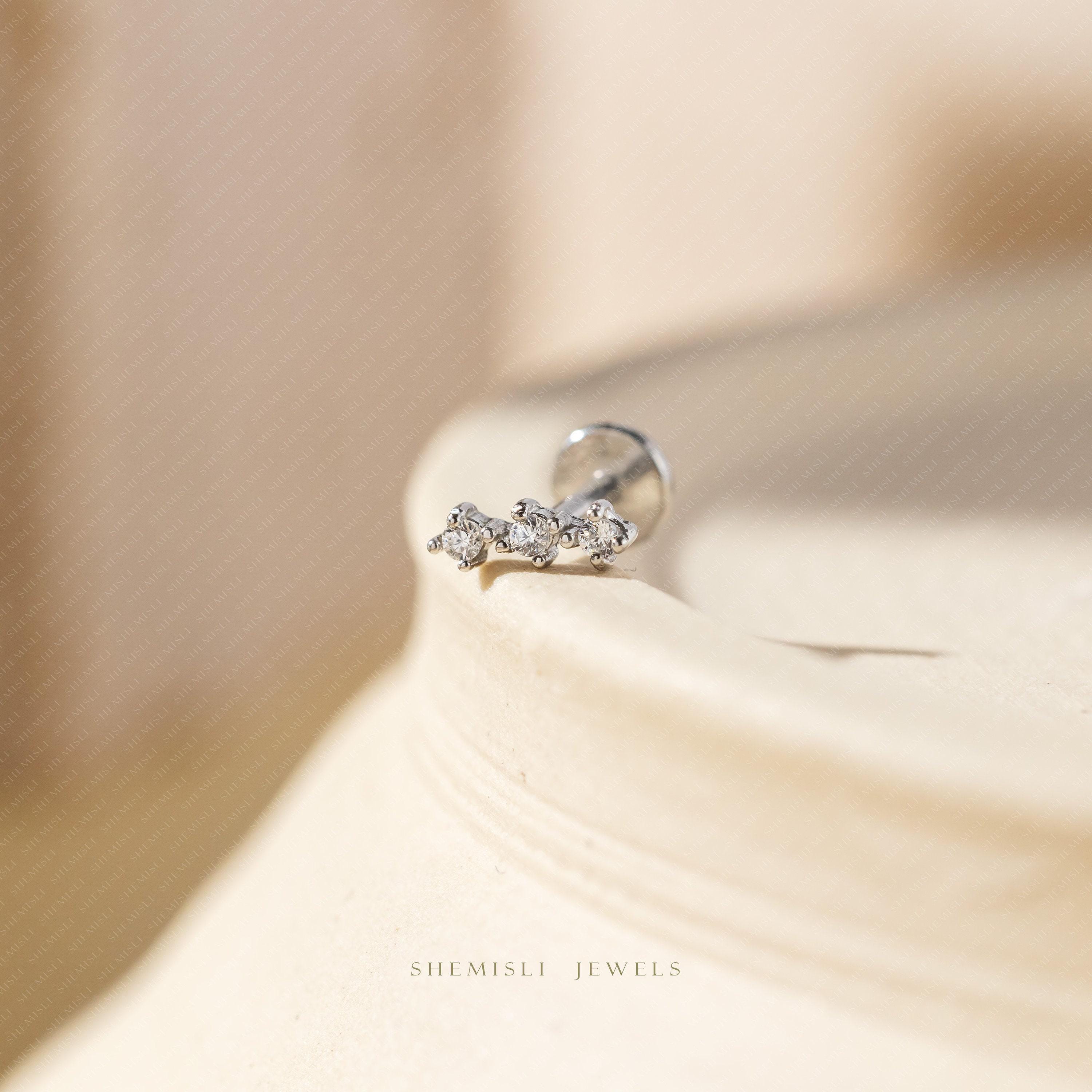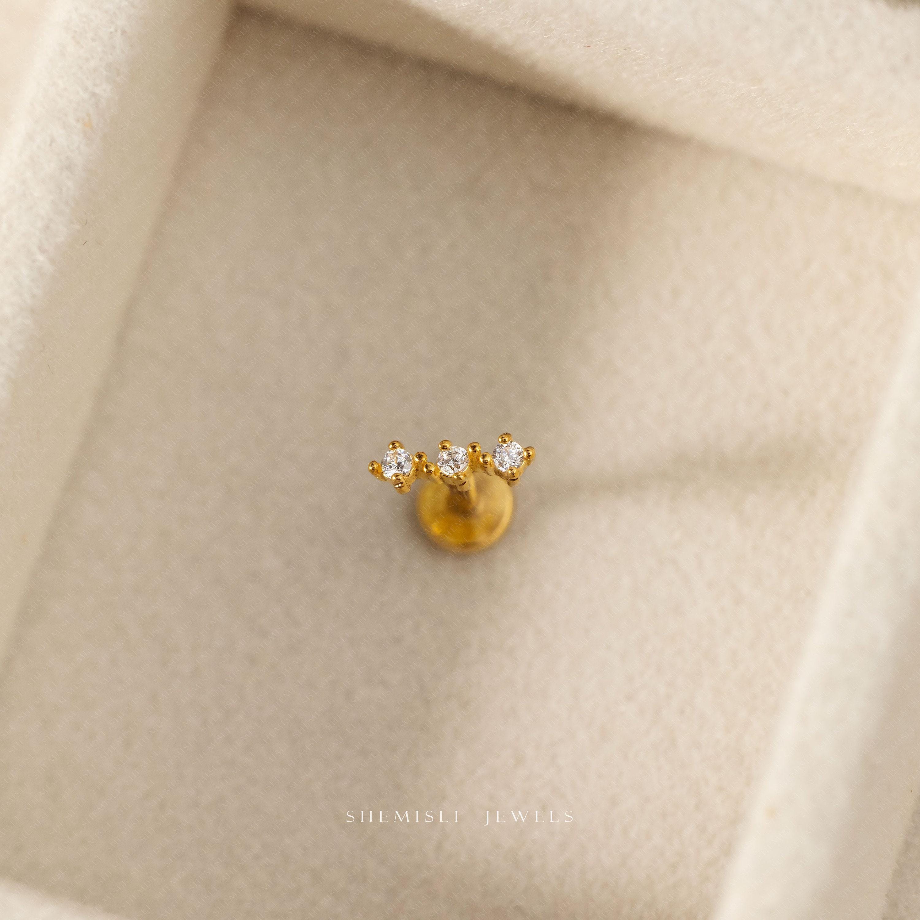Triple Stones Nose Stud, Threadless Flat Back, Minimalist Style,