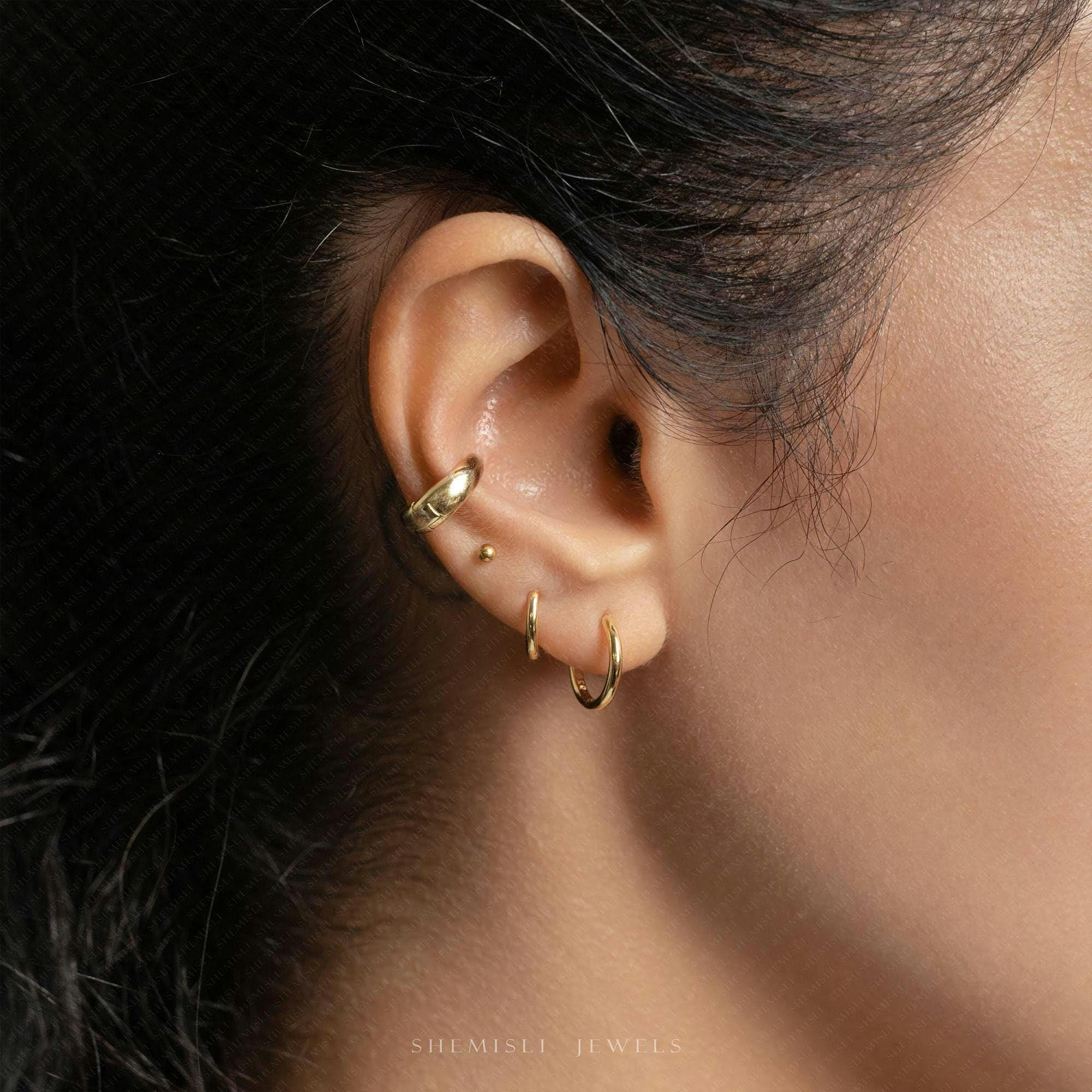 Tapered Conch Hoop Earring, Huggies, Unisex, Gold, Silver SHEMISLI
