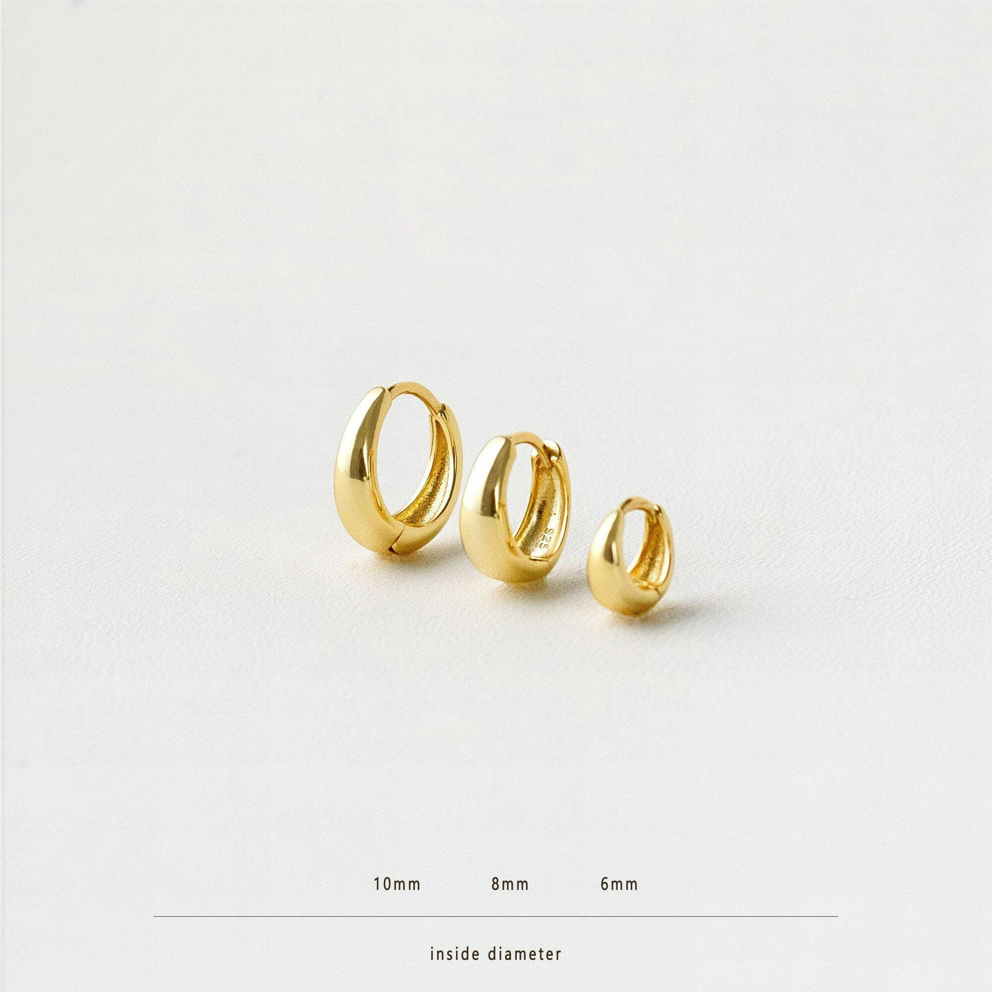 Tapered Hoop Earrings, Huggies, Unisex, Gold, Silver SHEMISLI -