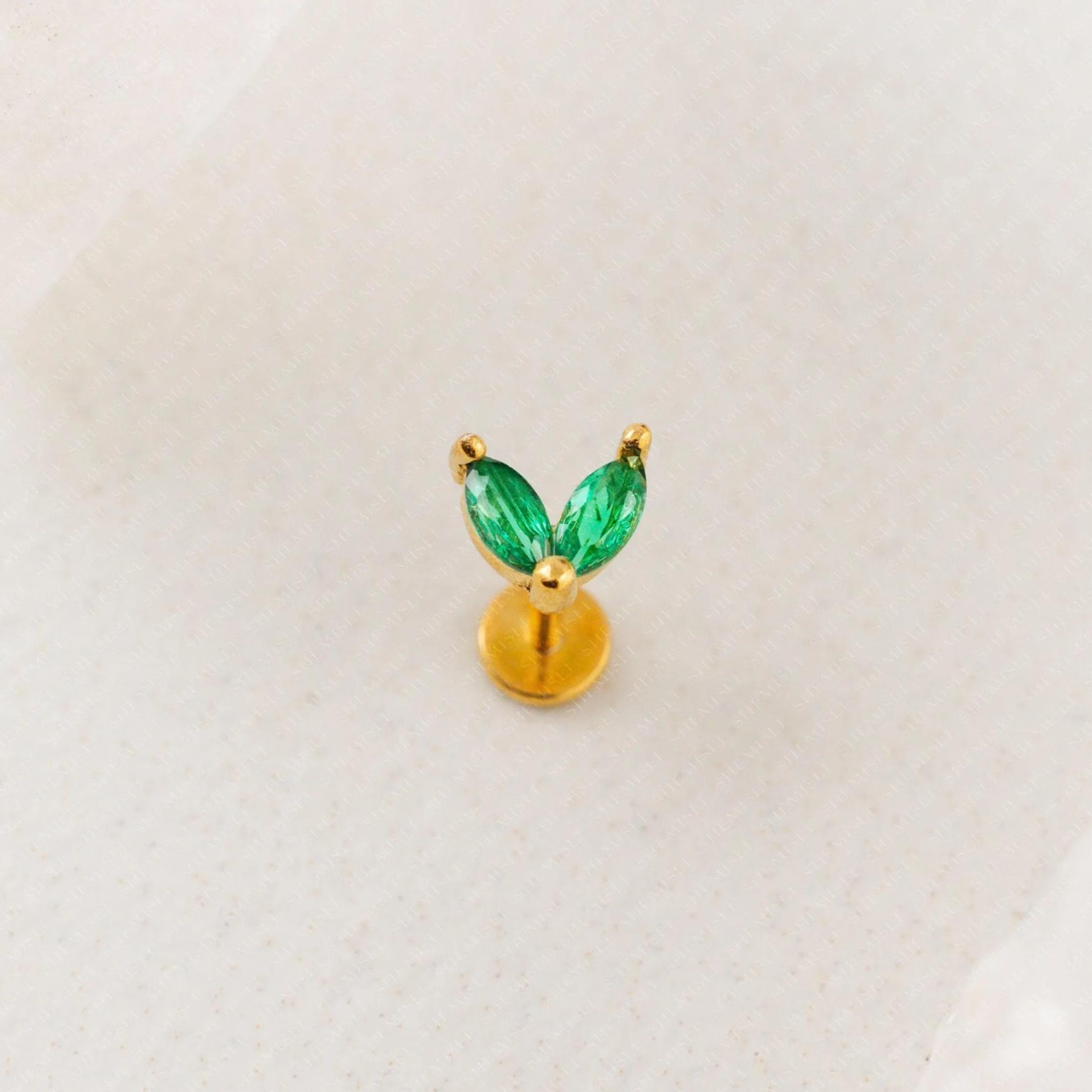 2-Leaf Emerald Tragus Stud