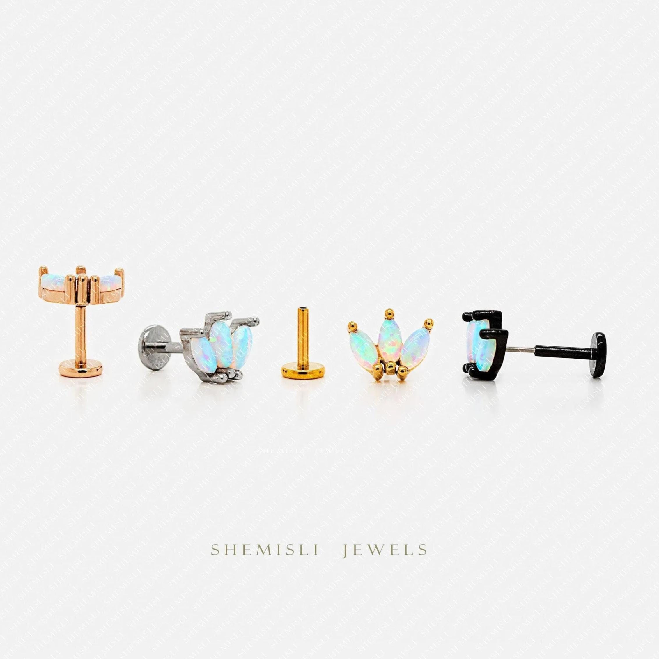 3-Leaf Opal Nose Stud, Threadless Flat Back, Minimalist Style,