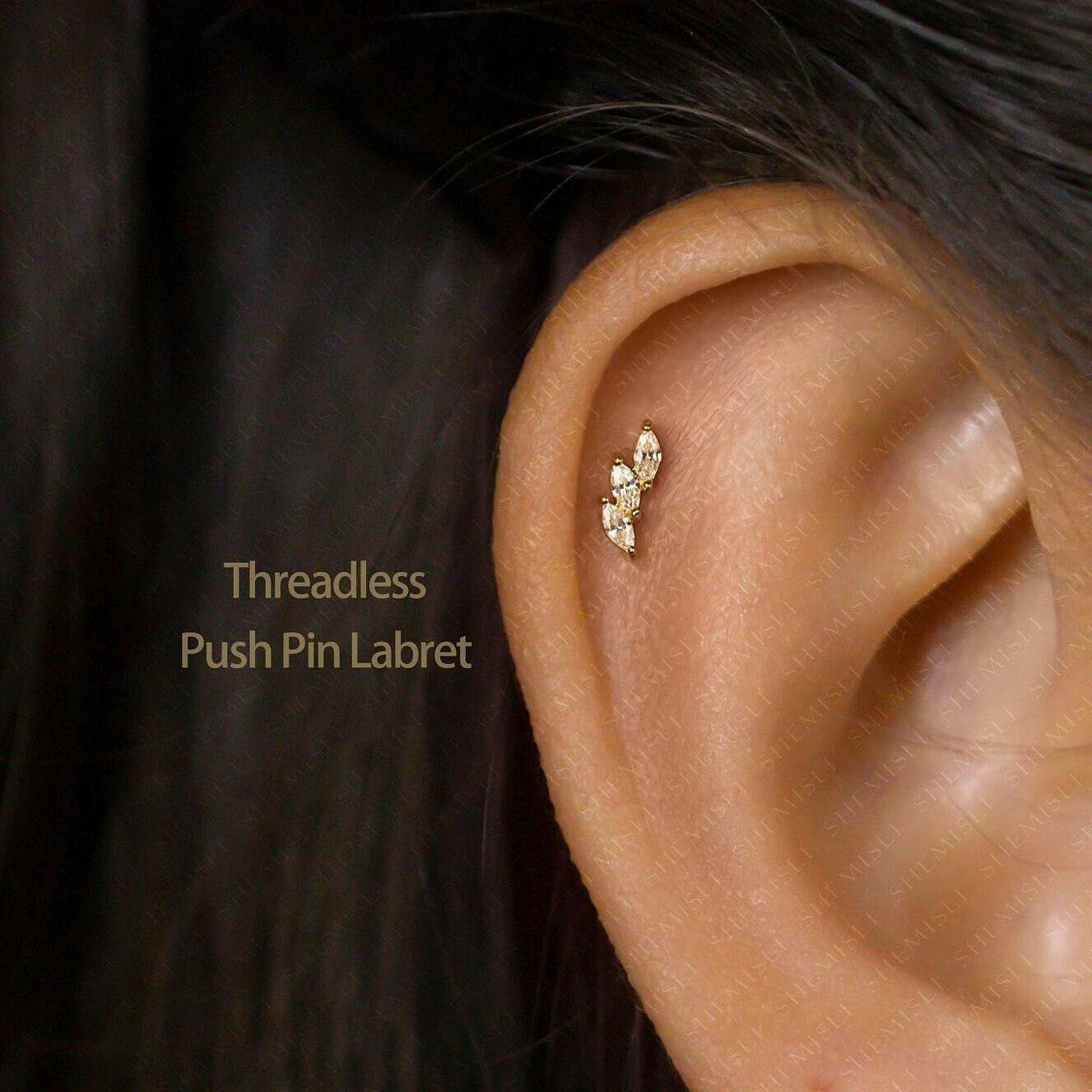 Tiny 3 leaf Threadless Flat Back Earring, 20,18,16ga, 5-10mm