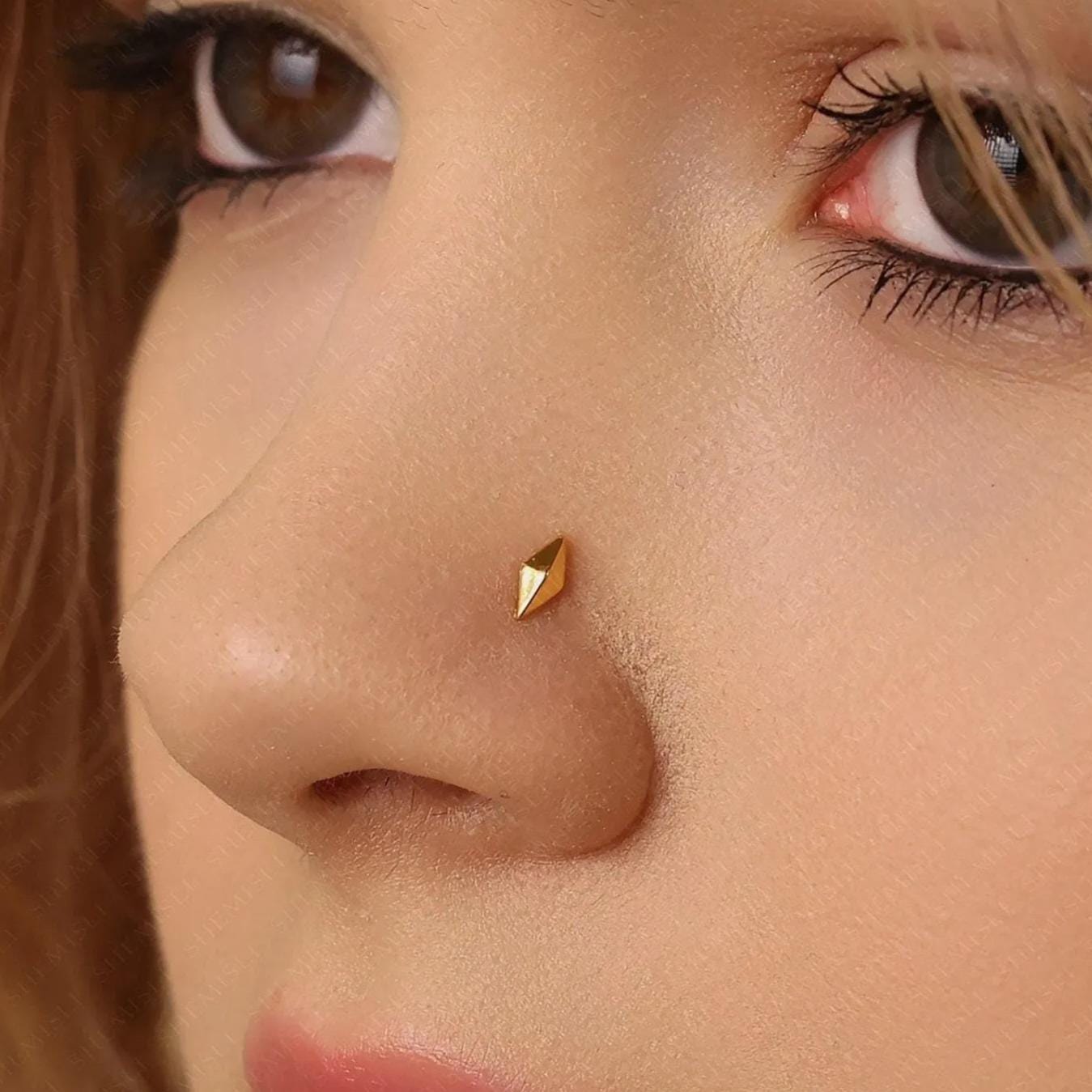 Diamond Shape Nose Stud, Threadless Flat Back, Minimalist Style,