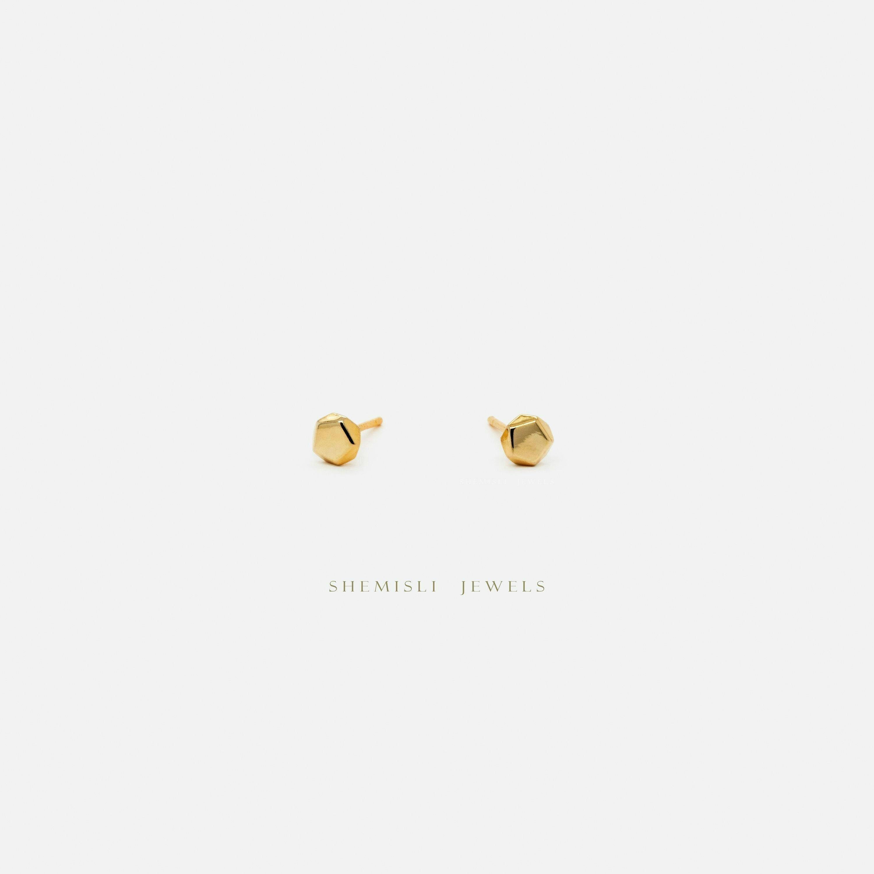 Tiny 3D Pentagon Stud Earring, Unisex, Gold, Silver SHEMISLI