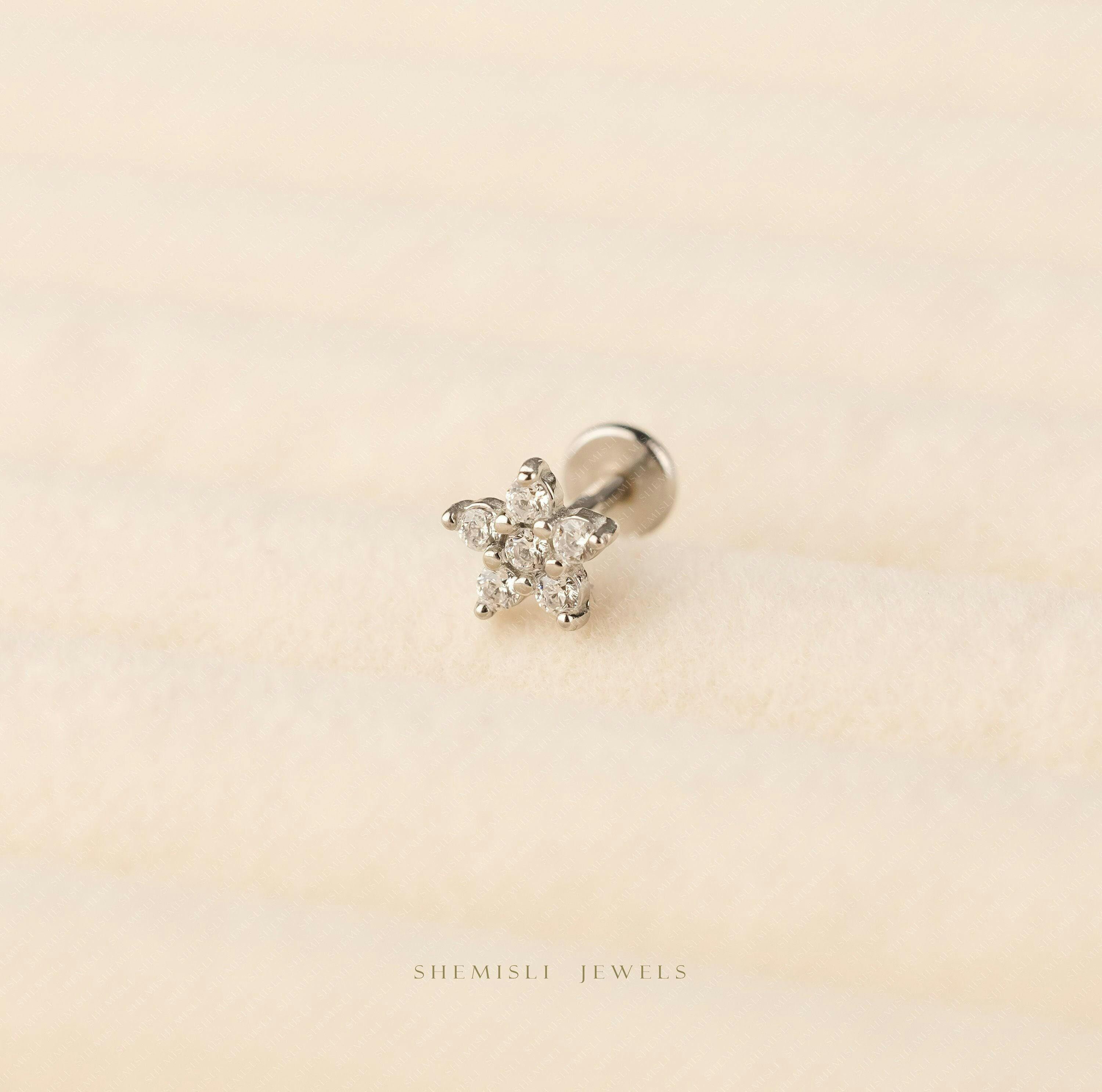 Tiny 5 Petal Flower with White Stones, Threadless Flat