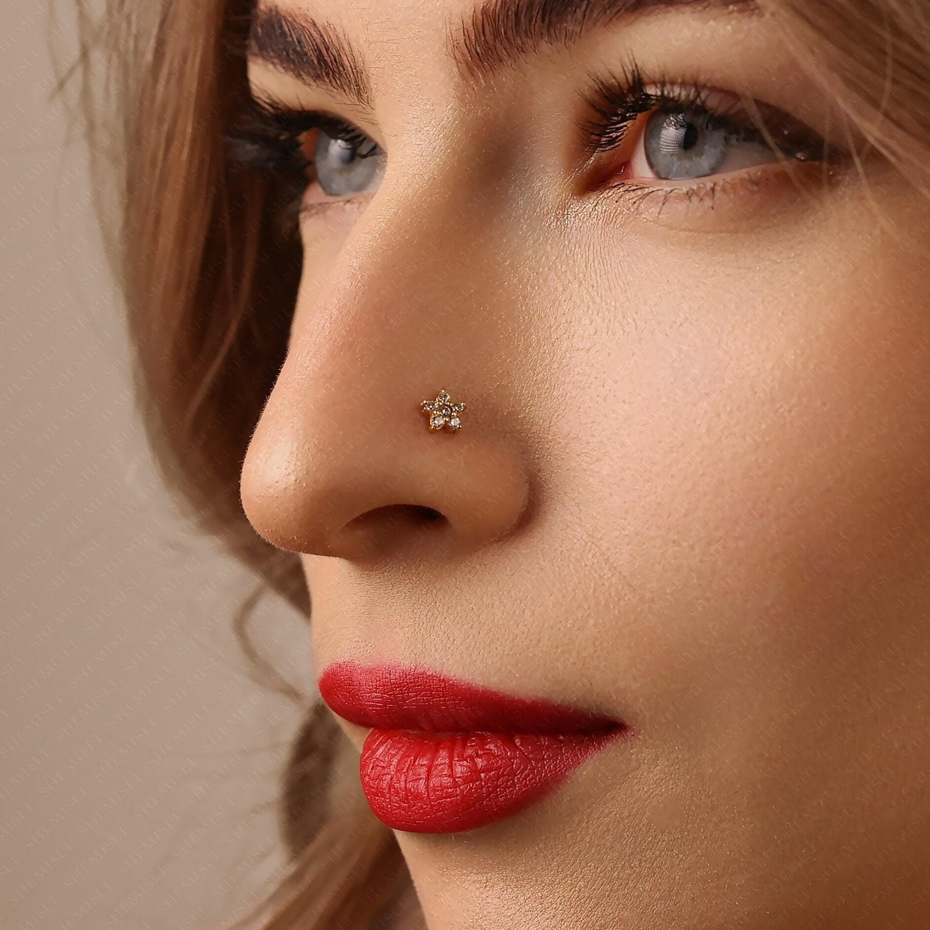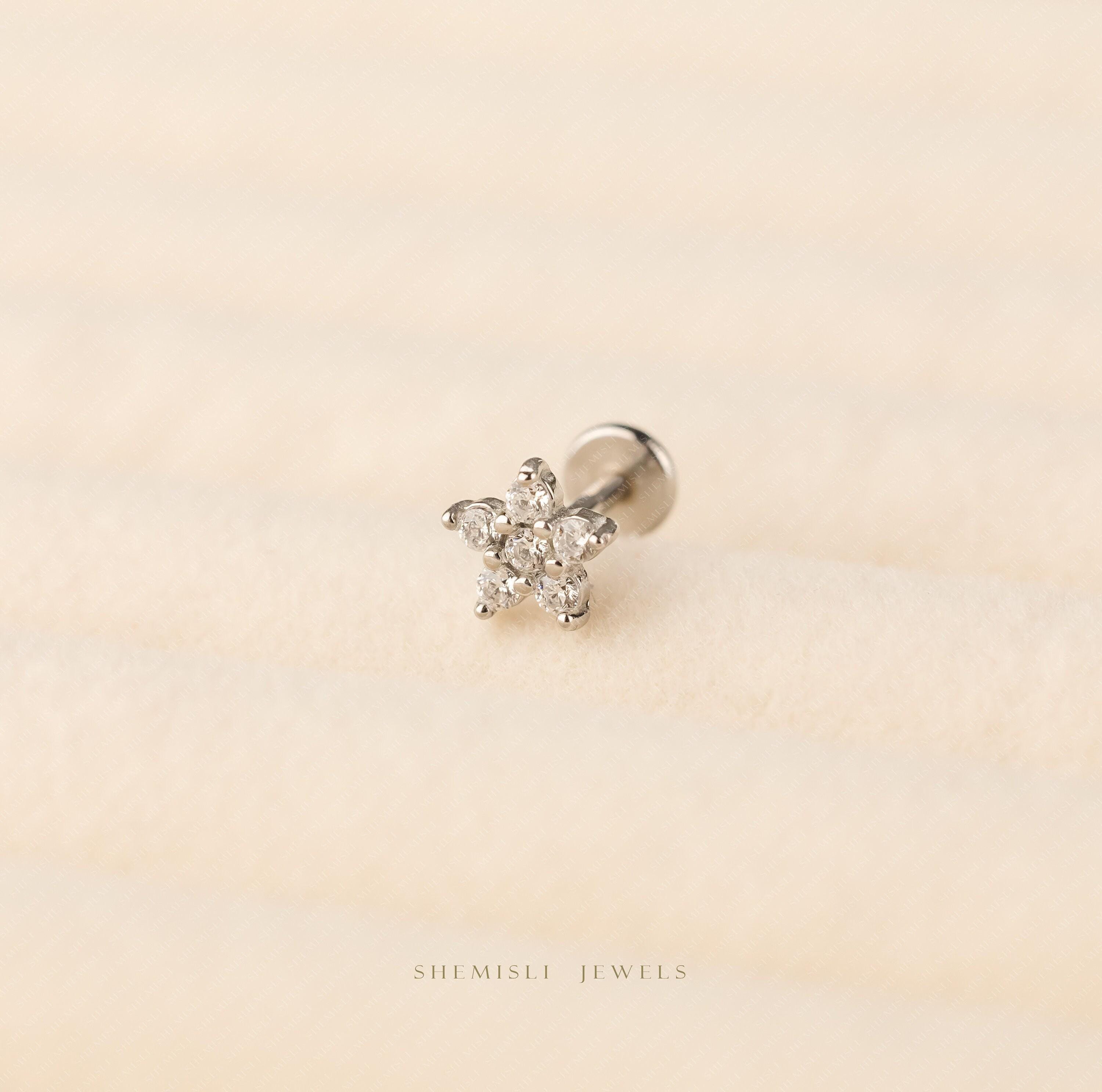 Forget-me-not Flower Nose Stud, Threadless Flat Back, Minimalist Style,