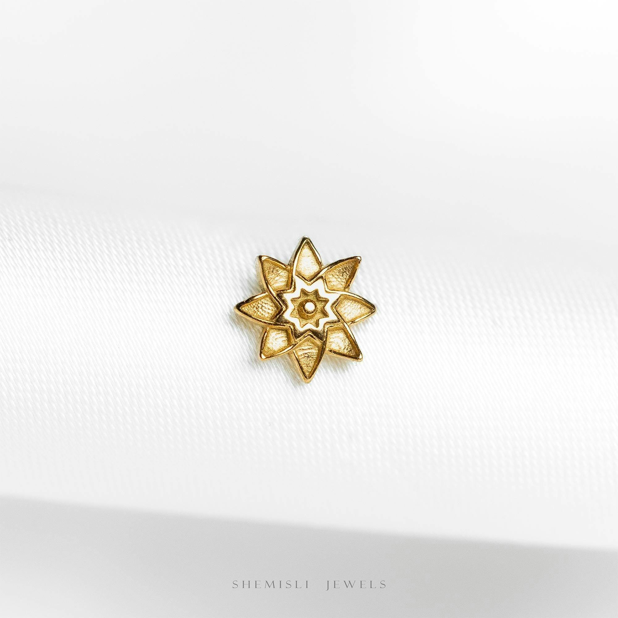 Tiny 8 Pointed Star Flower Threadless Flat Back Earring,