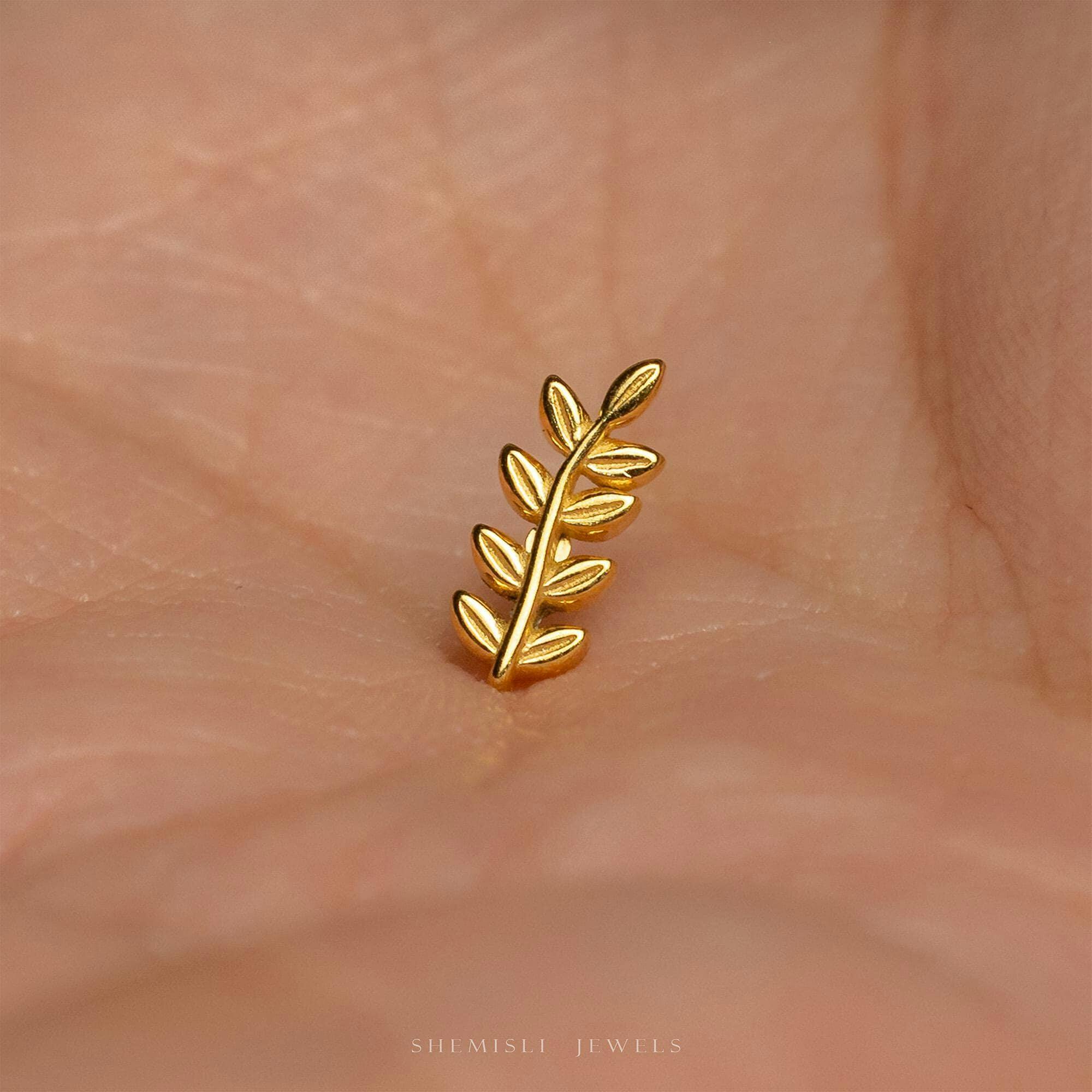 Tiny Acacia Tree Leaves Threadless Flat Back Earring, 20,18,16ga,