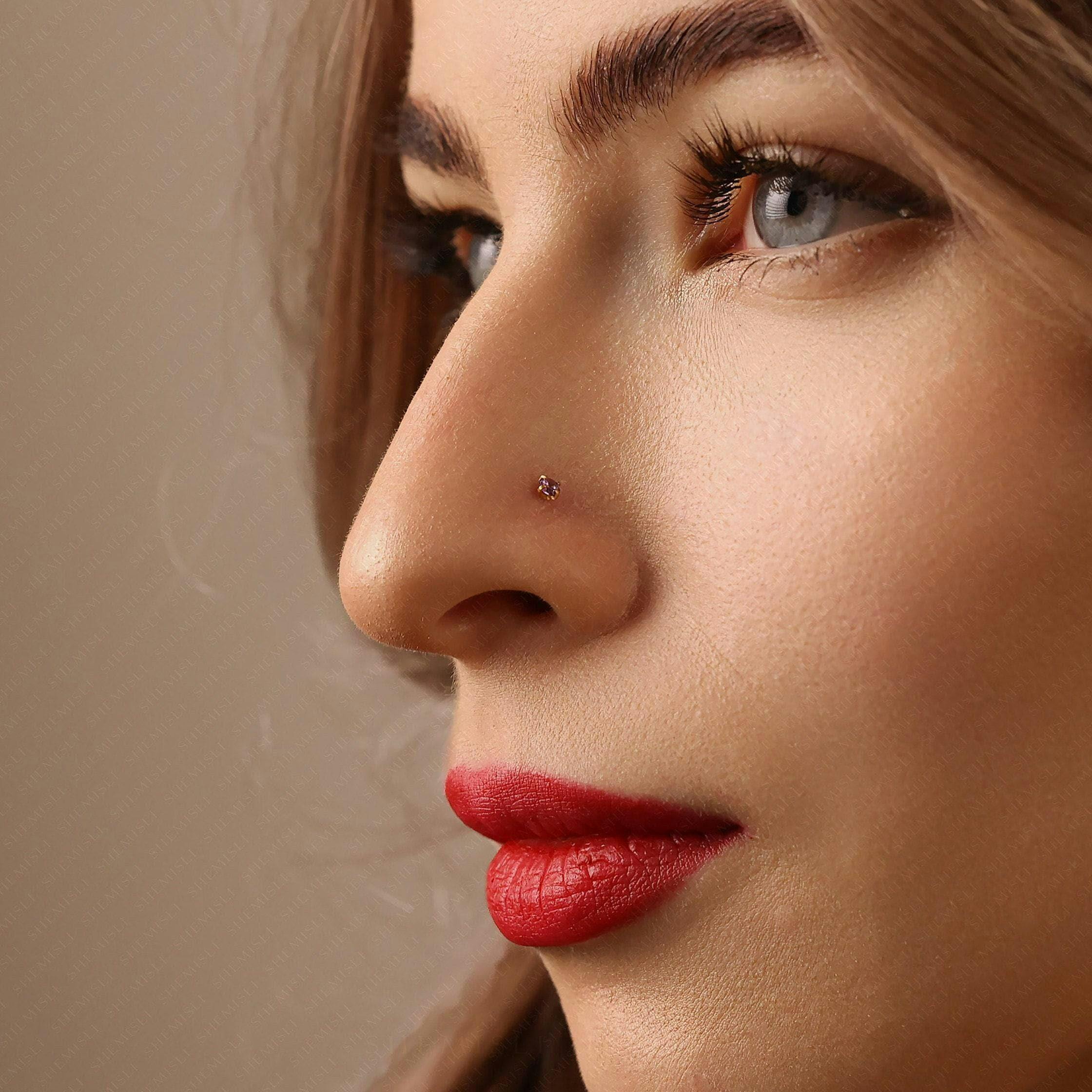 Tiny Amethyst Threadless Flat Back Nose Stud, February Birthstone,