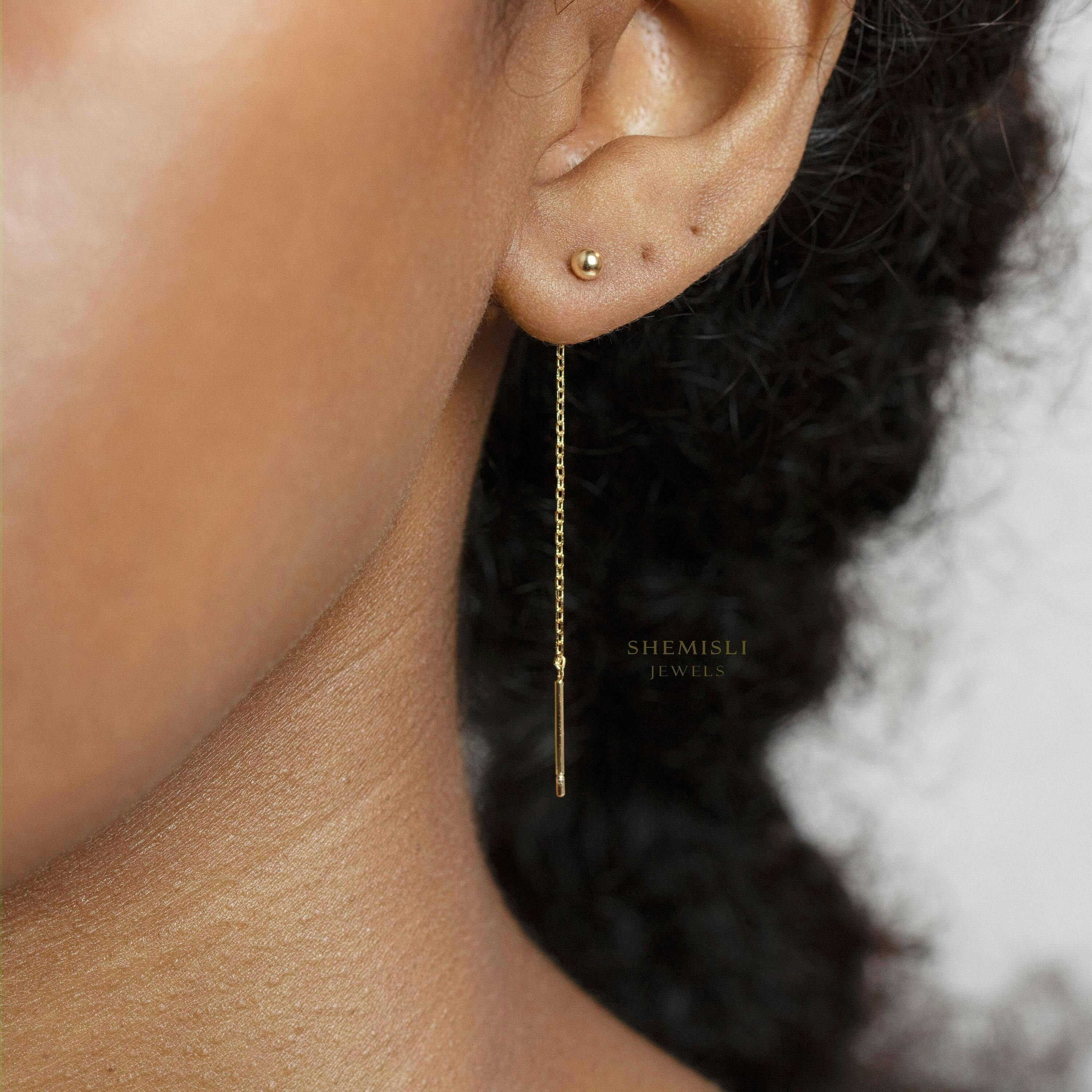 Tiny Ball Ear Threader, Unisex, Gold, Silver SHEMISLI -