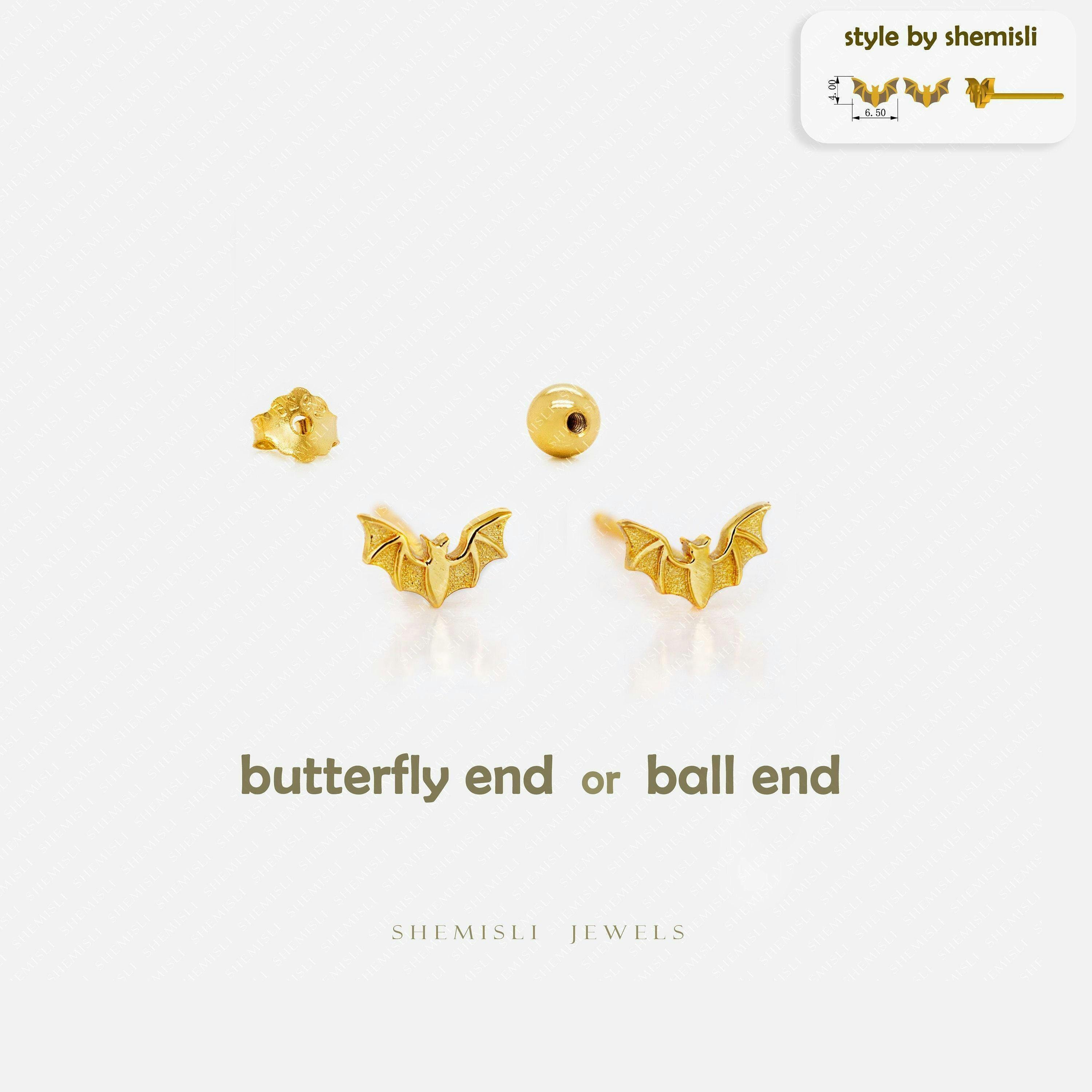 Tiny Bat Stud Earring, Unisex, Gold, Silver SHEMISLI SS883