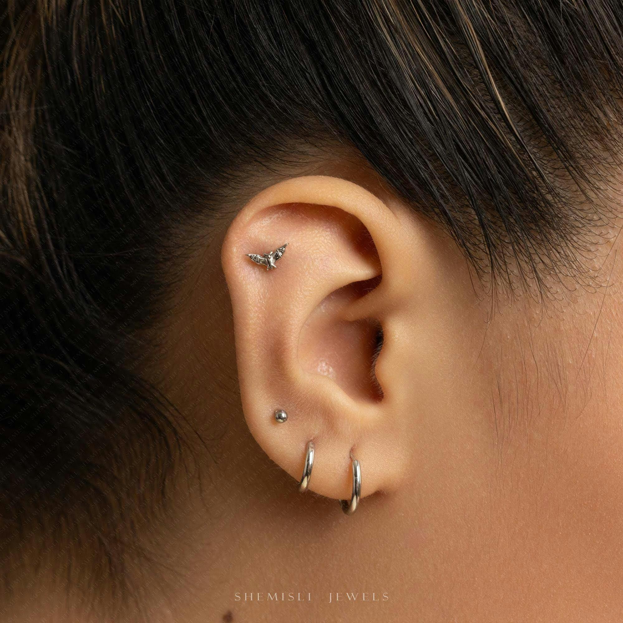Tiny Bat Threadless Flat Back Earring, 20,18,16ga, 5-10mm Unisex,
