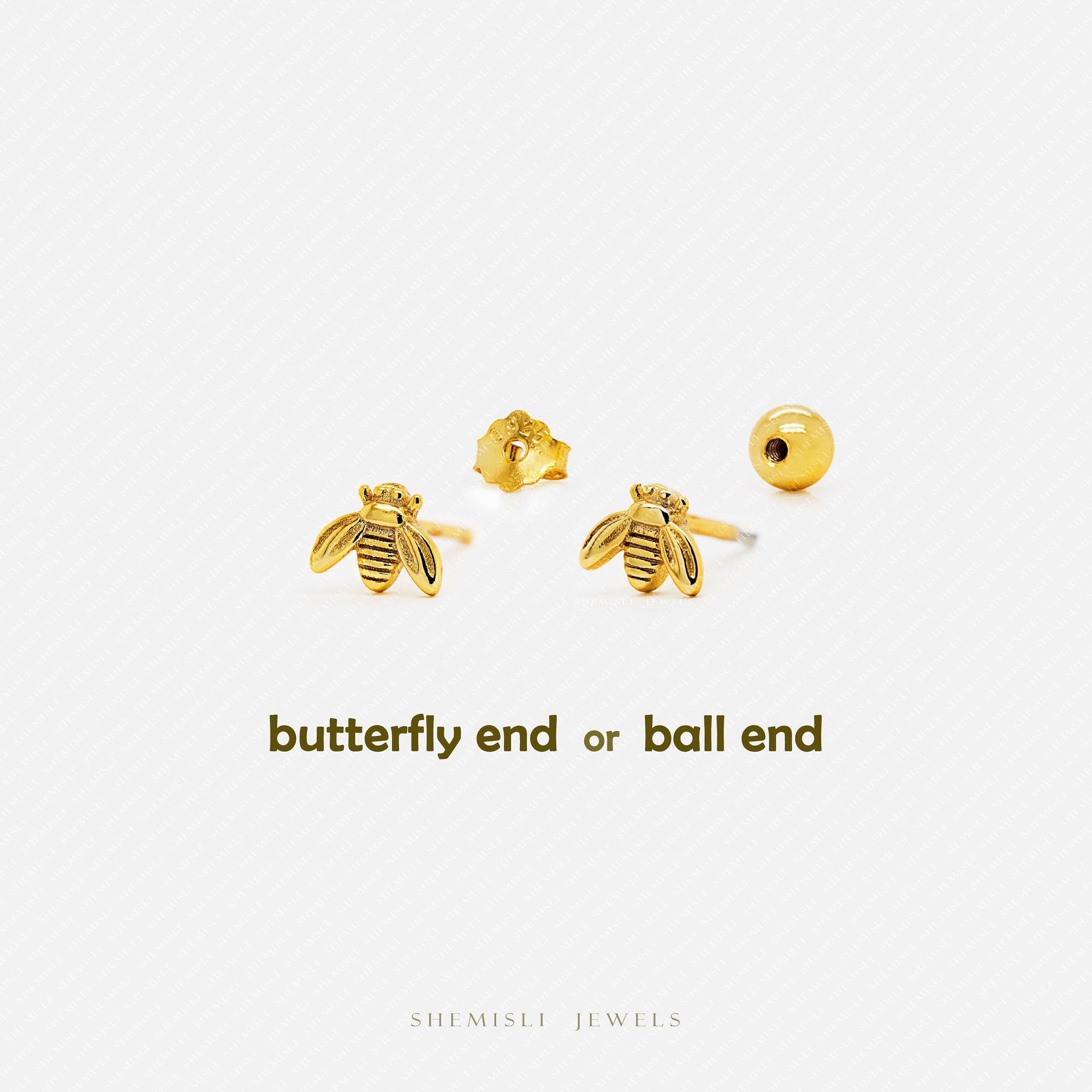 butterfly end: post thickness is 20g (0.8mm), post length is 9mm with butterfly end attached, butterfly end is 4mm