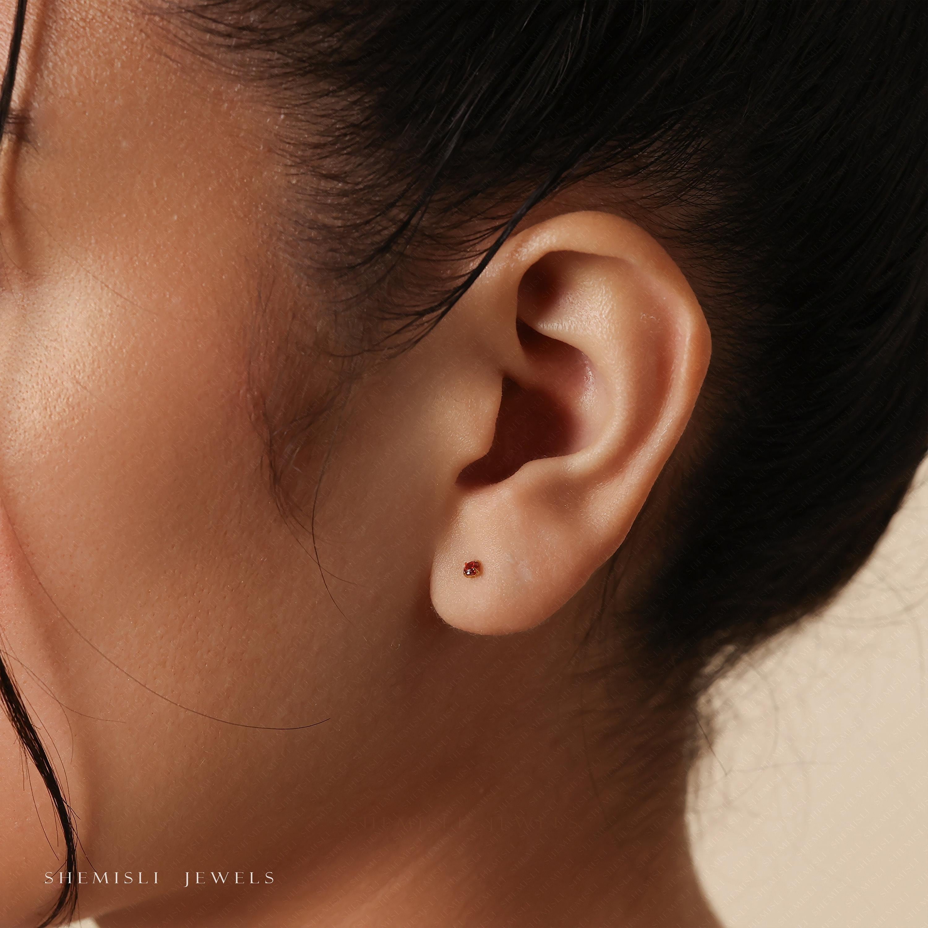 ♡ Stone is 2.5mm. Post thickness is 18 gauge (1.0mm), and post length is 6mm or 8mm.
